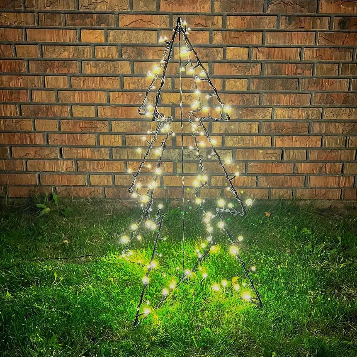 Deze metalen kerstboom zet je dankzij het 3d design eenvoudig in de tuin. De boom bevat prachtige LED-verlichting met timer.