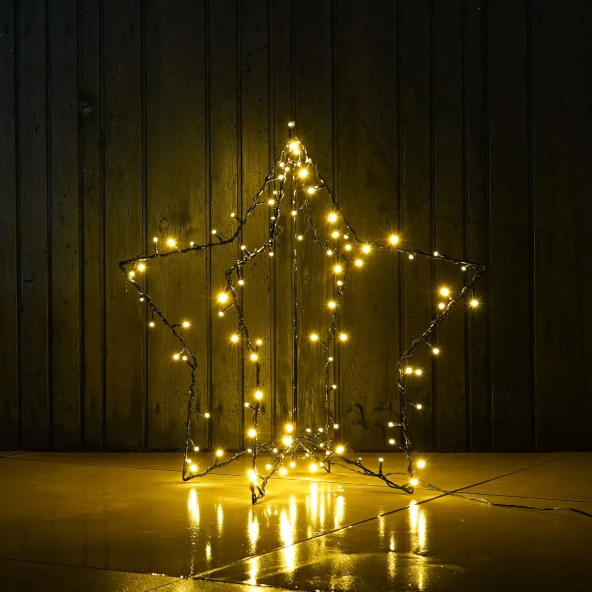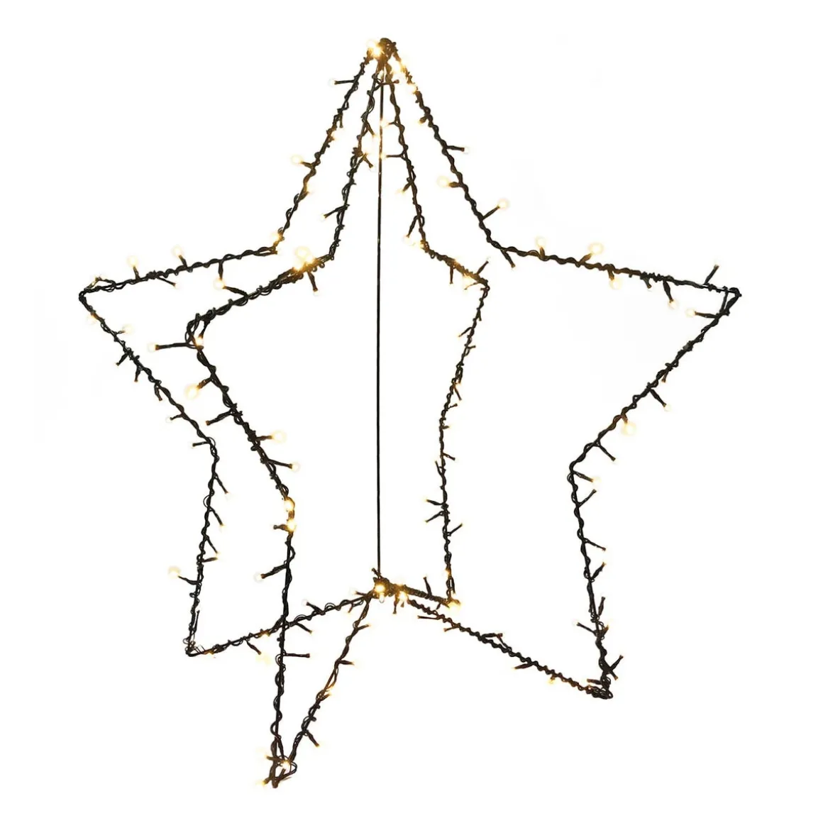 Deze metalen kerstster zet je dankzij het 3d design eenvoudig in de tuin. De ster bevat prachtige LED-verlichting met timer.