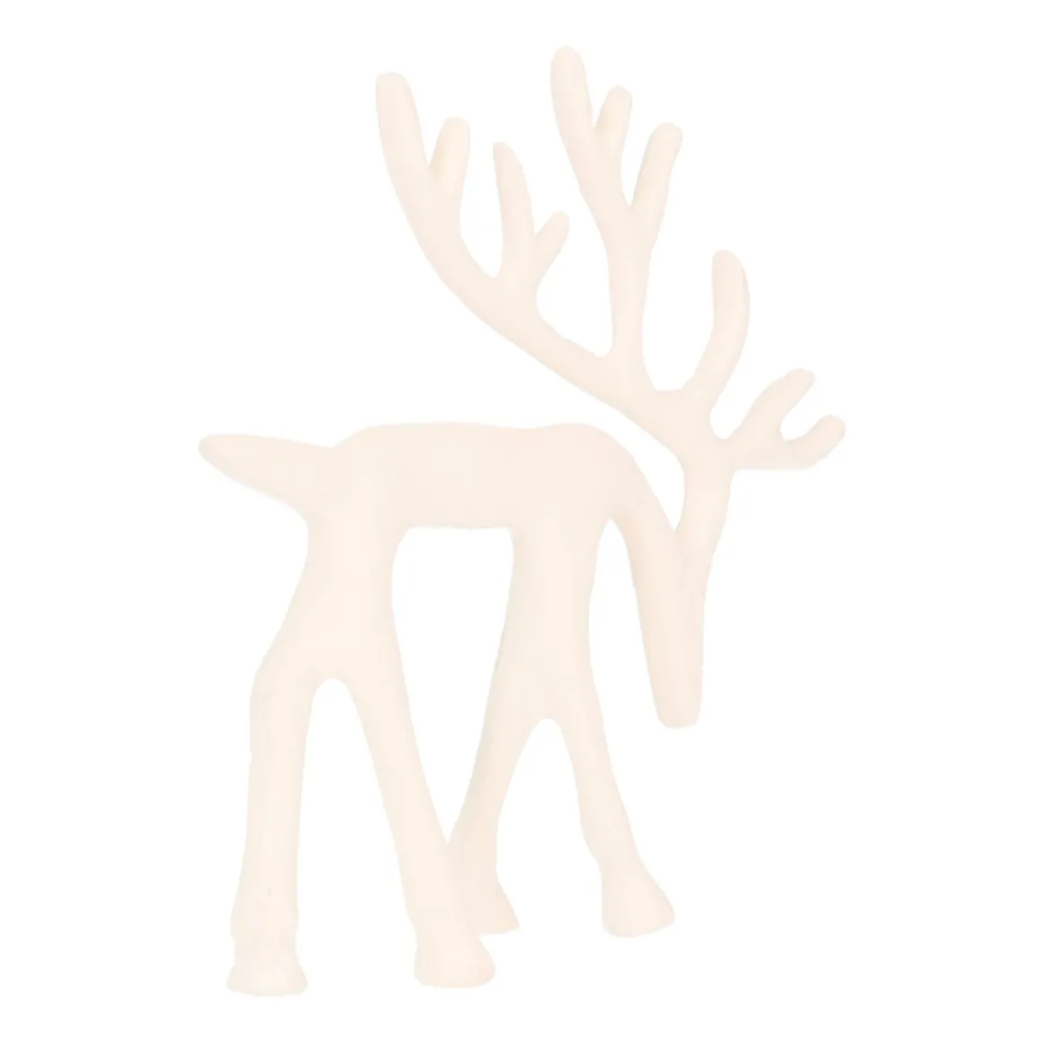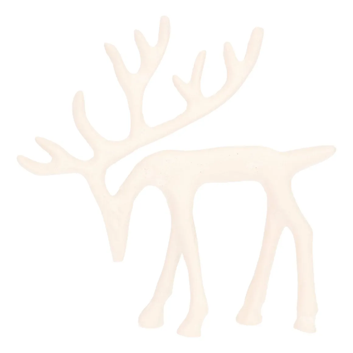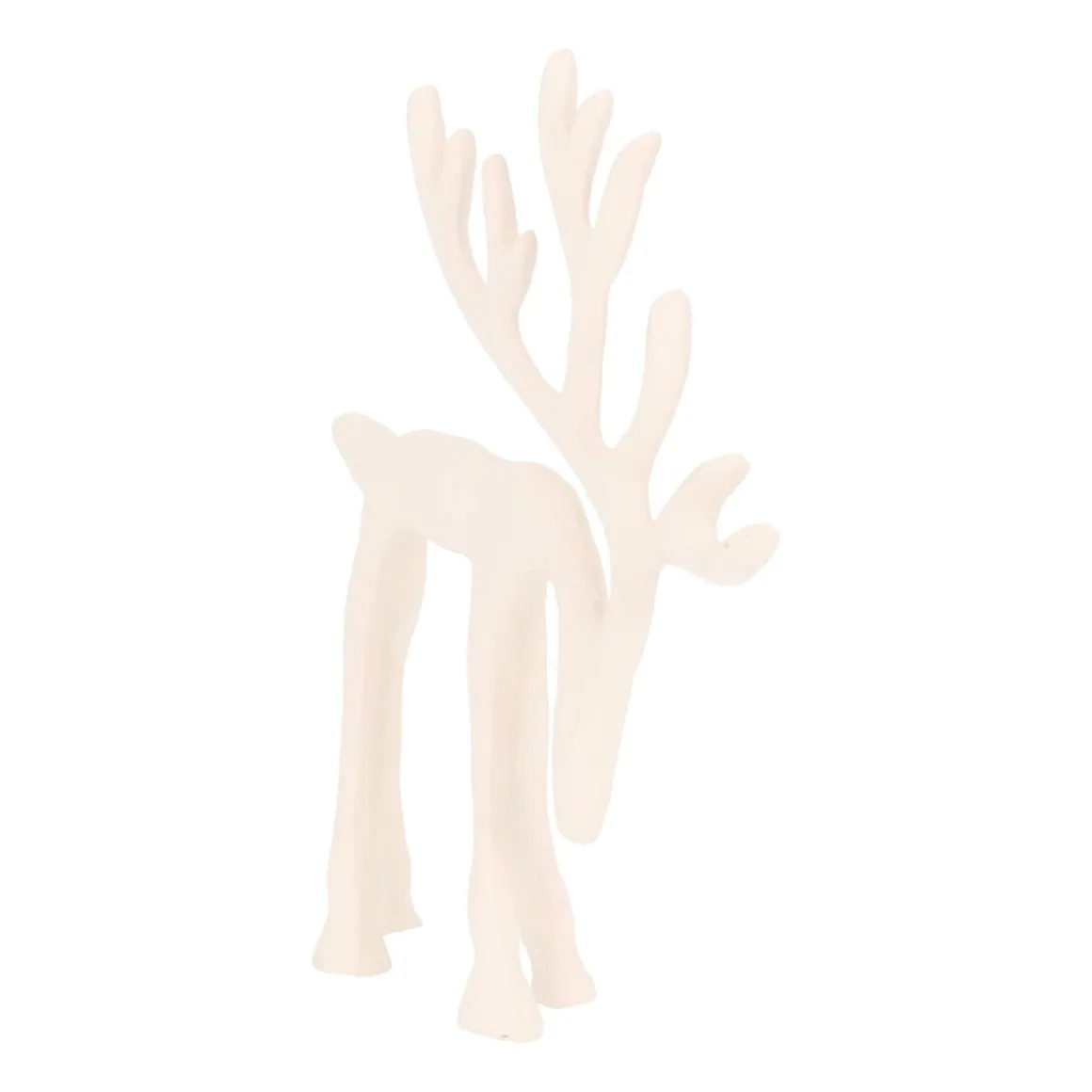 Charmant wit rendier, gemaakt van aluminium, met zijn kop speels omlaag, zet je in de kast, op tafel, of in het raam. Combineer het met de variant waarbij het rendier zijn kop omhoog heeft, voor een mooi duo dat samen een prachtig tafereel vormt. Voeg wat dennengroen toe, leg het op een laagje nepsneeuw, of zet het onder de kerstboom voor een sfeervolle touch!