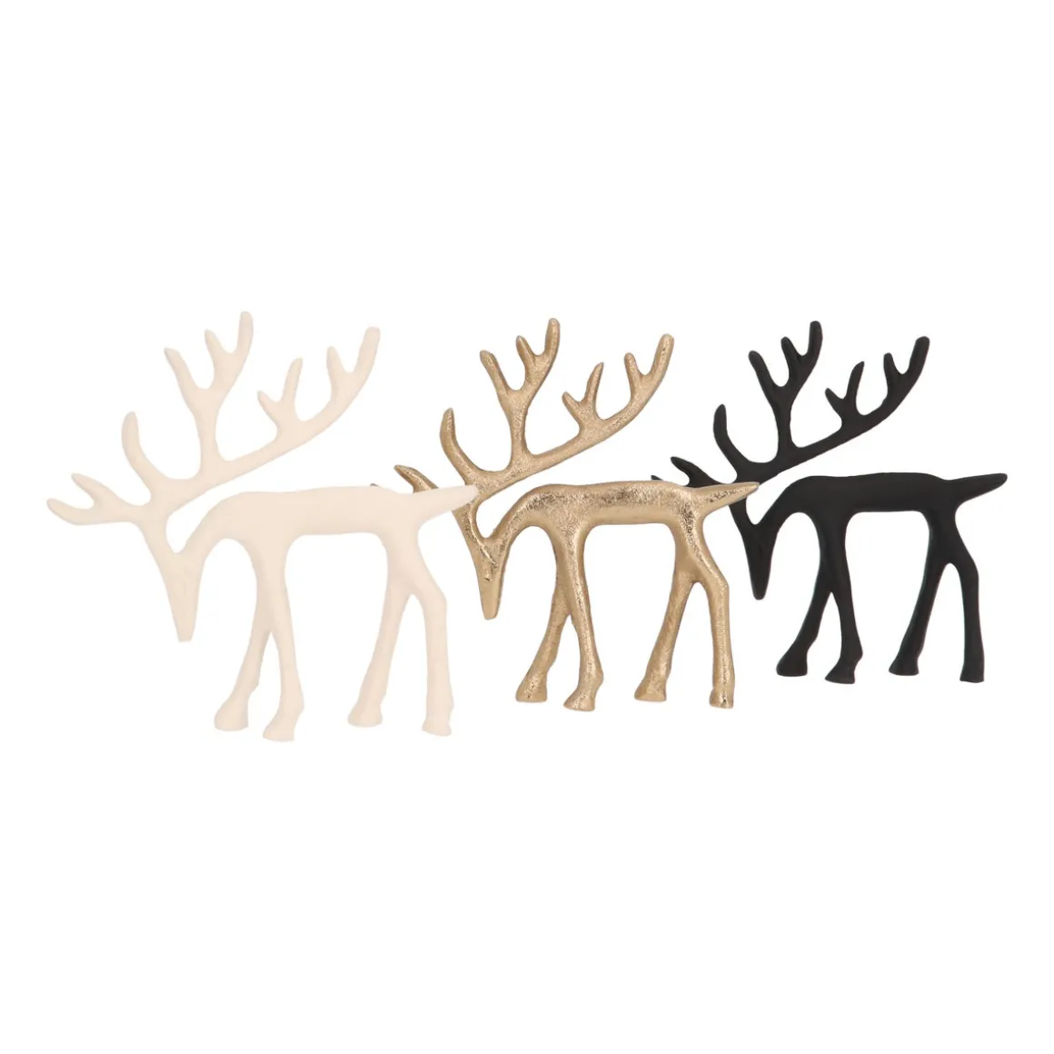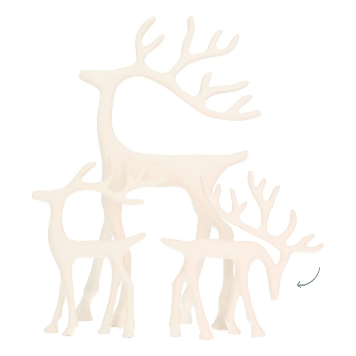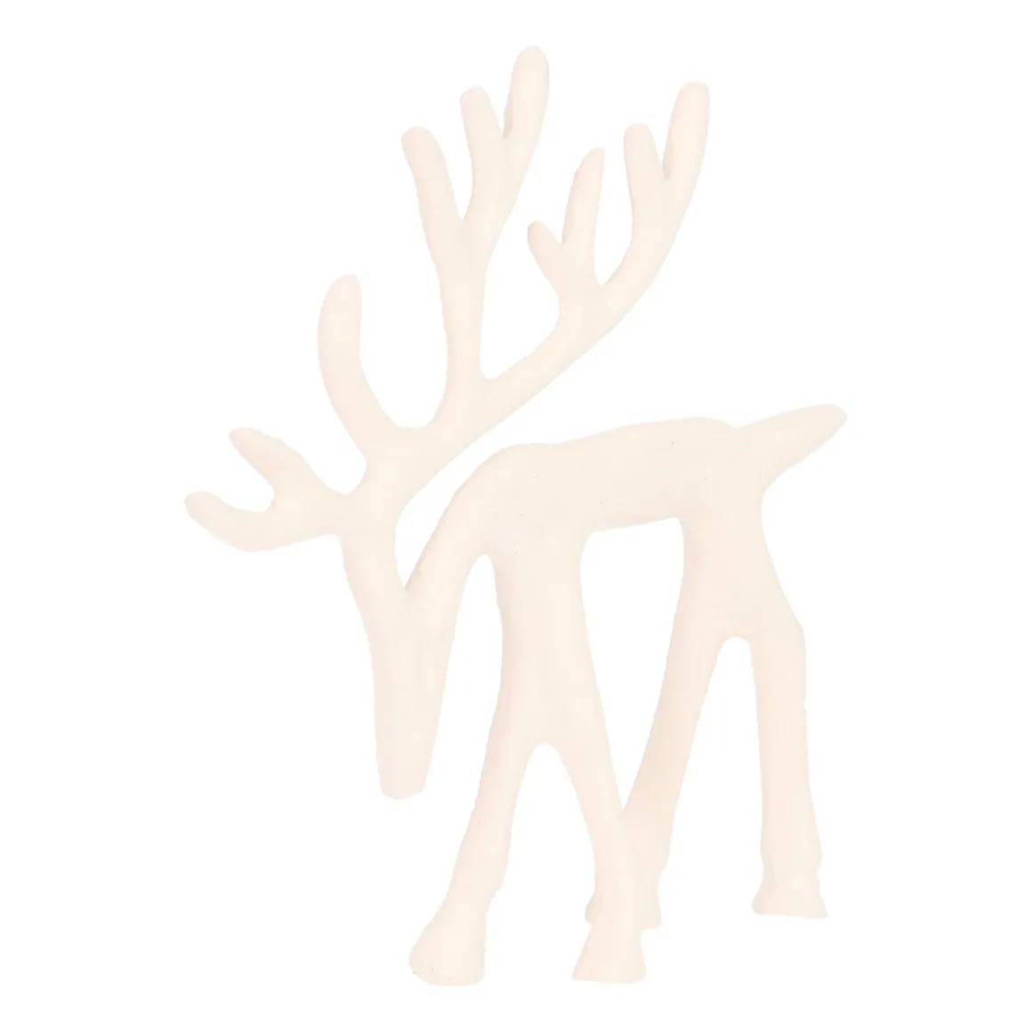 Charmant wit rendier, gemaakt van aluminium, met zijn kop speels omlaag, zet je in de kast, op tafel, of in het raam. Combineer het met de variant waarbij het rendier zijn kop omhoog heeft, voor een mooi duo dat samen een prachtig tafereel vormt. Voeg wat dennengroen toe, leg het op een laagje nepsneeuw, of zet het onder de kerstboom voor een sfeervolle touch!