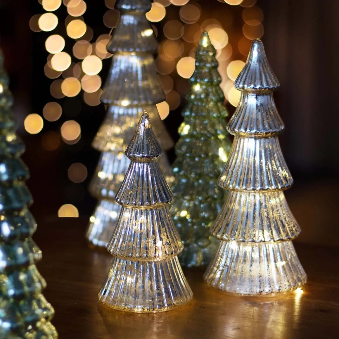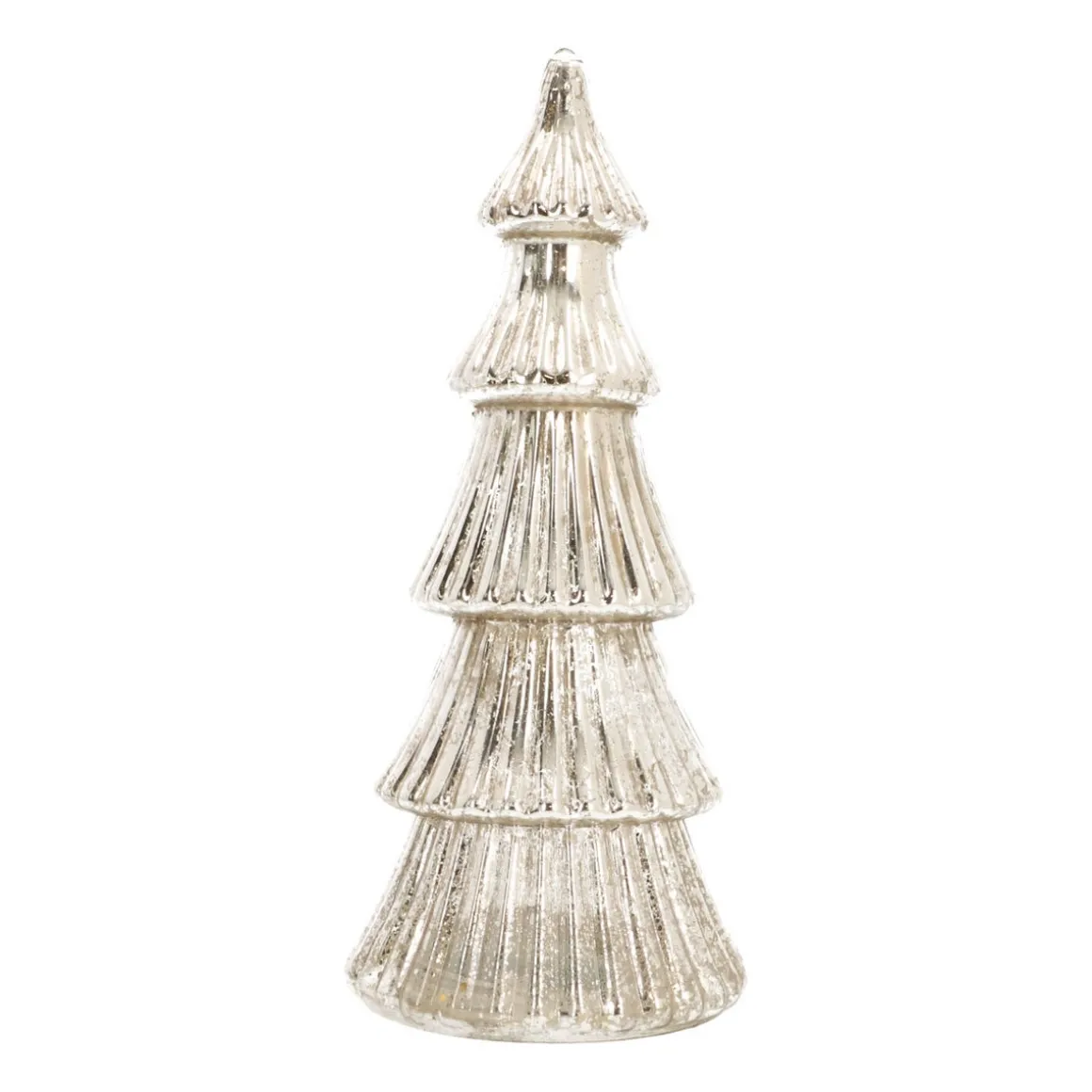Zeer decoratieve kerstboom van glas in de kleur zilver. Deze kerstboom is 27 cm groot en heeft een sfeervolle uitstraling dankzij de LED verlichting. De kerstboom heeft dankzij zijn unieke, ietwat golvende vormen een moderne look.