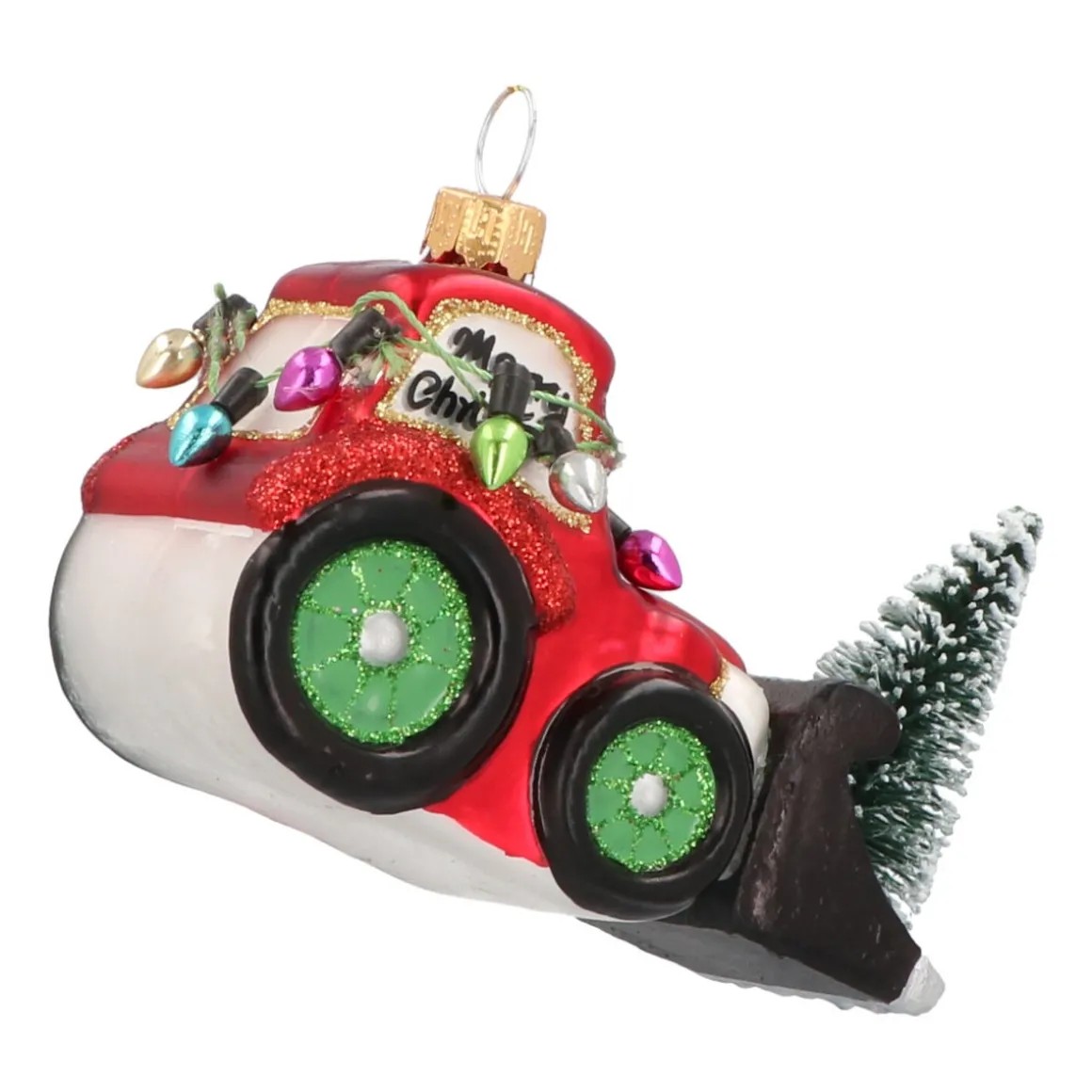 Luxe glazen kerstboomhanger rode tractor van ca. 9 cm groot. Deze geweldige rode tractor is perfect voor boerderijliefhebbers, fans van tractoren, grote voertuigen en natuurlijk voor boeren en boerinnen!