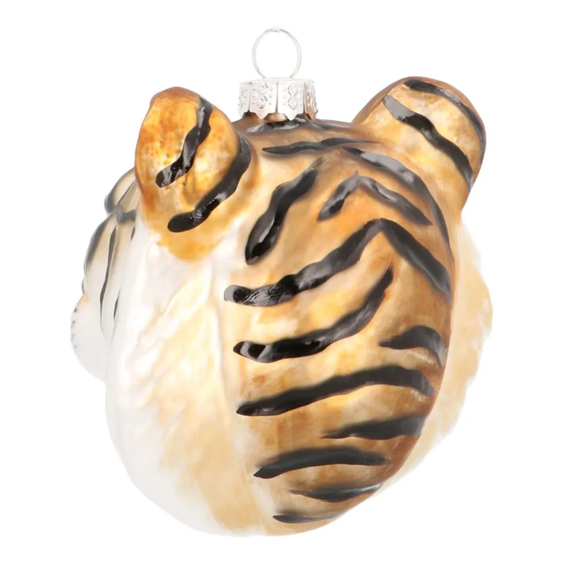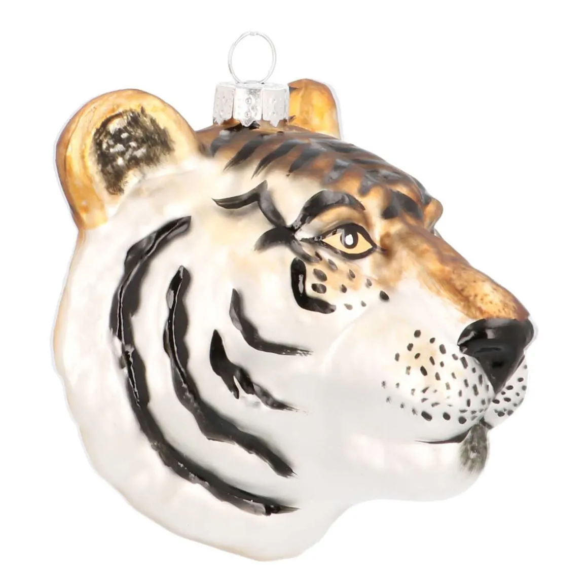 Een blik in de ogen van de tijger is genoeg om iedereen versteld te doen staan bij het zien van deze bijzondere kerstboomversiering. De prachtige tijgerkop is goudbruin en heeft zwarte strepen. Dit artikel heeft een heel bijzondere uitstraling en zal de rest van de decoraties prachtig complementeren.