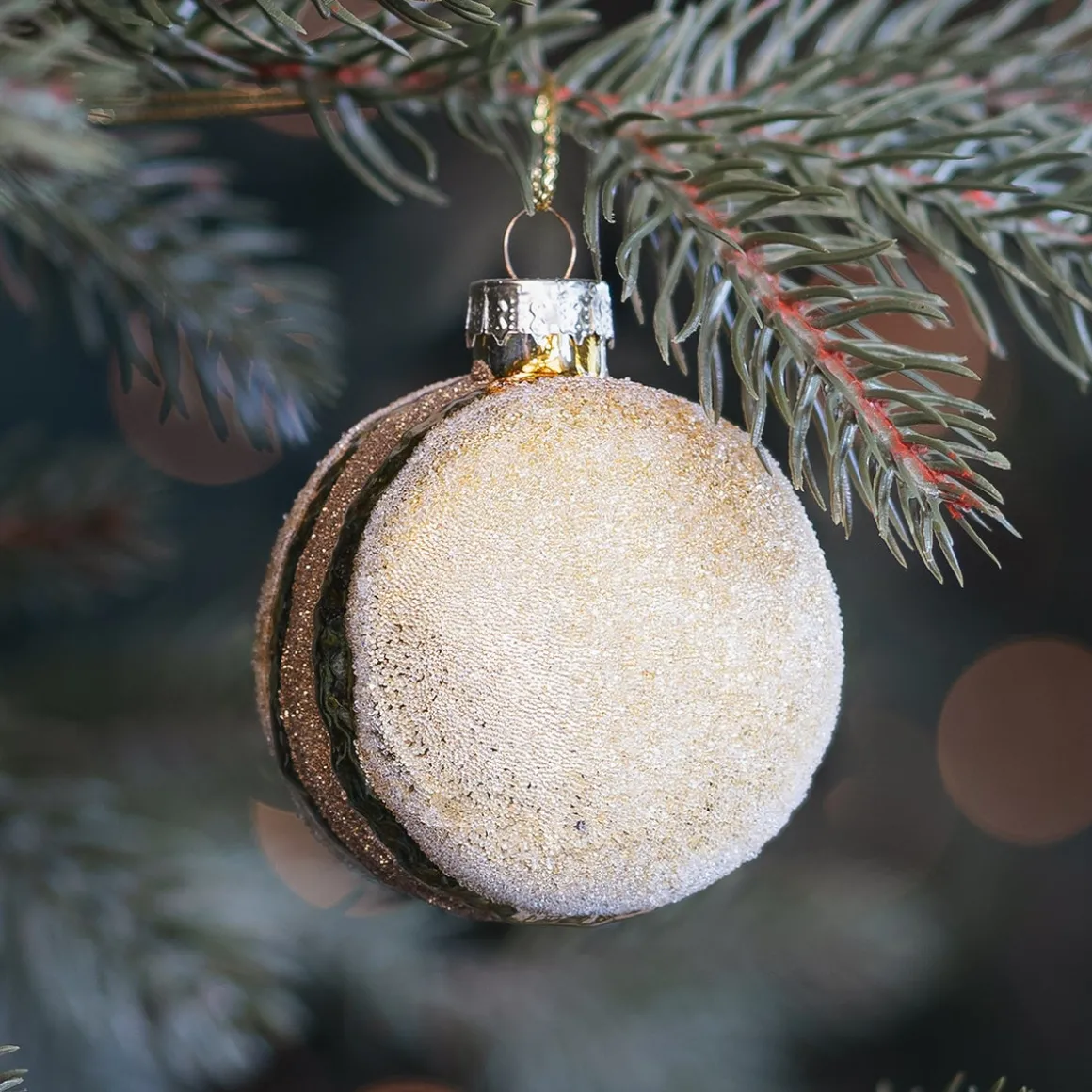Deze glanzende gouden macaron hanger van glas is een echte sfeermaker in je kerstboom. Met zijn sprankelende suikercoating en gouden touwtje is de macaron extra feestelijk. Perfect voor de liefhebbers van fijne lekkernijen. Combineer hem met de andere kleuren zoals zilver, paars, roze of rood voor een vrolijke en kleurrijke boom. En wist je dat deze hanger van 5 cm niet alleen leuk staat in de boom? Leg hem eens in een schaal met wat kerstgroen of verwerk hem in een krans of guirlande voor een extra feestelijke touch.
