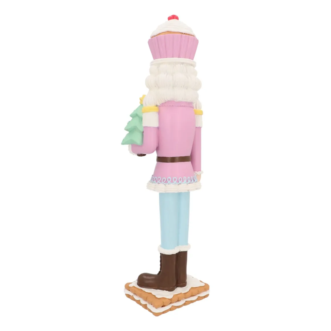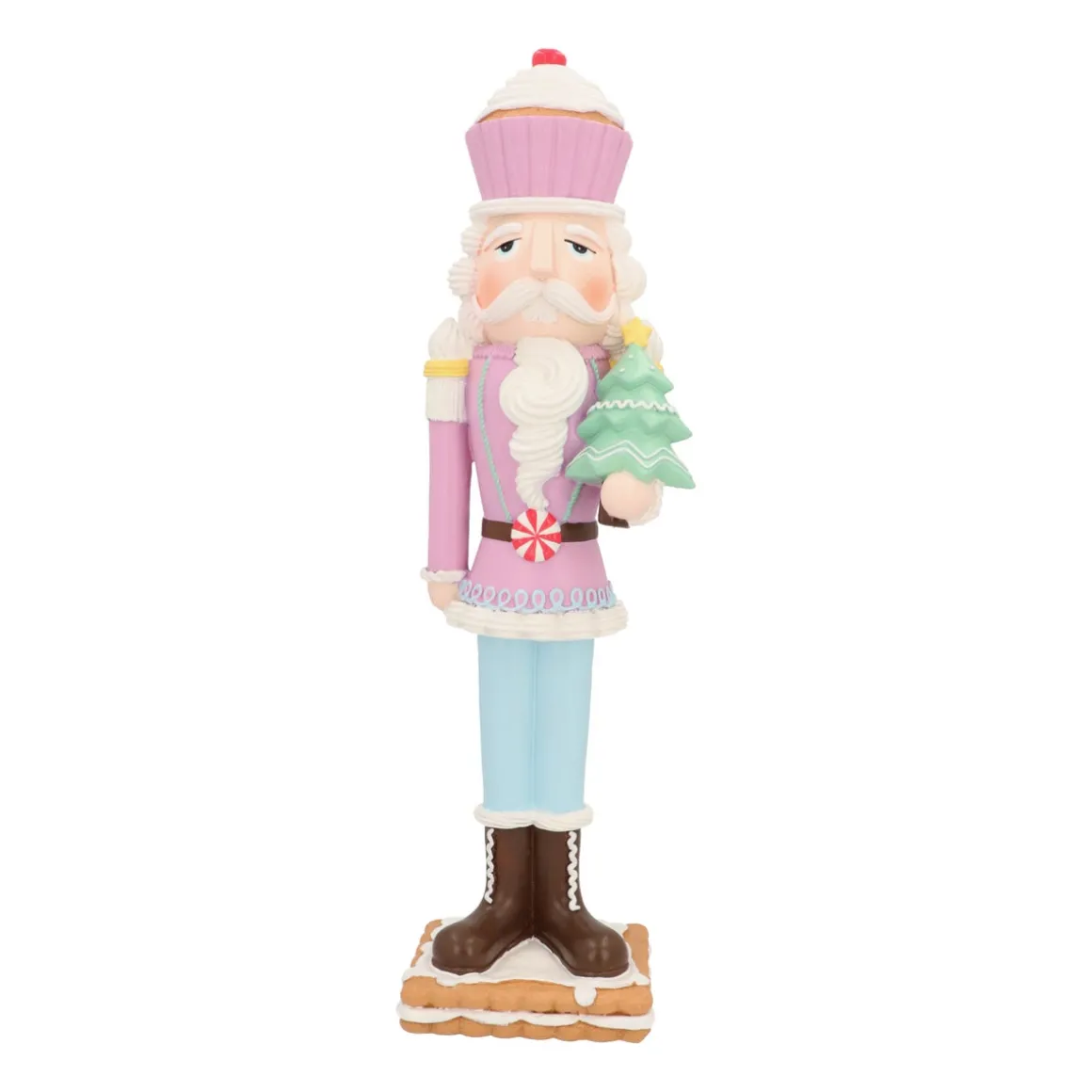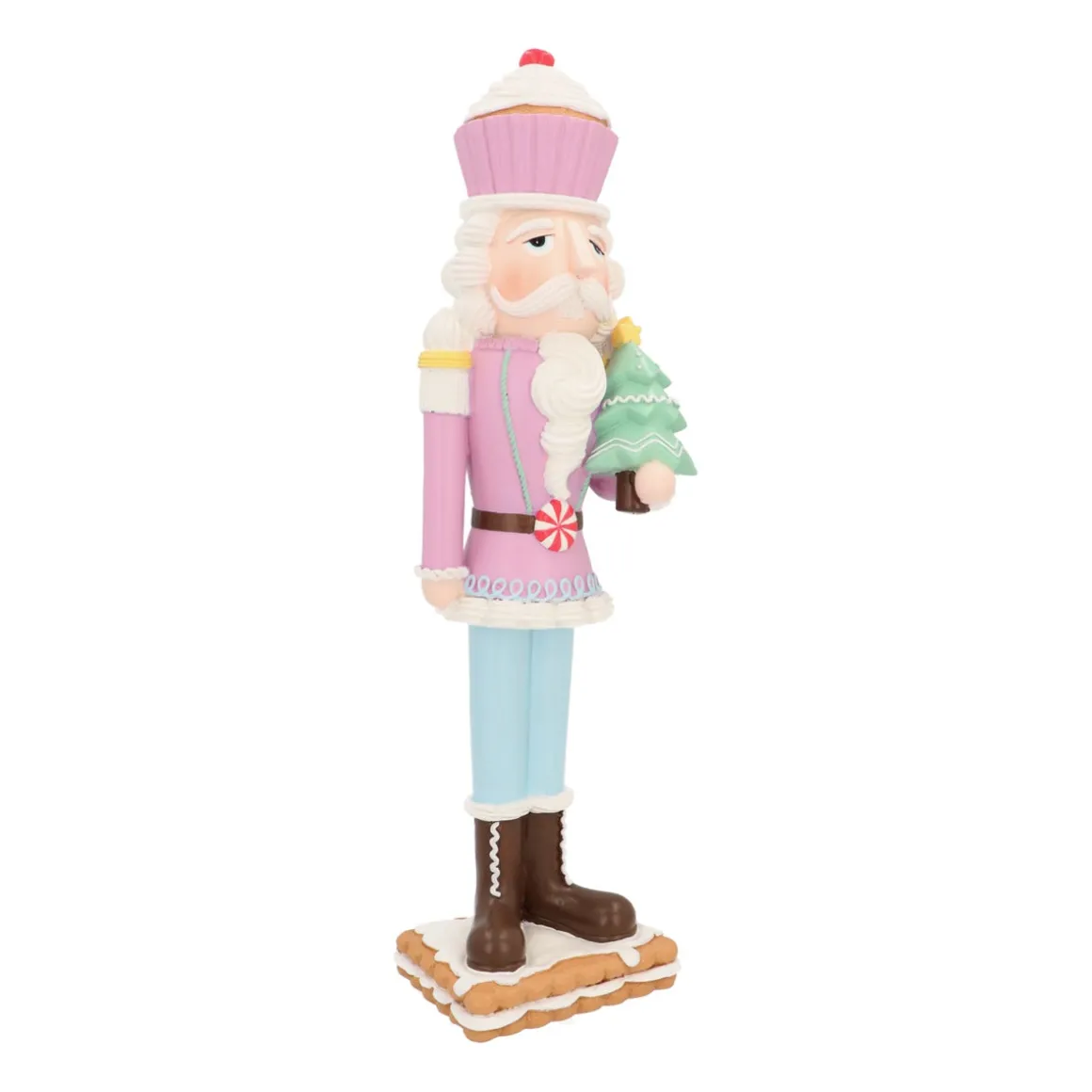 Deze XL notenkraker brengt niet alleen een kerstboom, maar ook een flinke dosis zoetigheid in huis! Met zijn cupcake-hoed en vrolijke pastelkleuren is hij allesbehalve traditioneel. Zijn roze jas en lichtblauwe broek zitten vol speelse details, zoals de slagroombaard, snoepjesriem en vrolijke franjes aan zijn jas. Je raakt niet uitgekeken!
