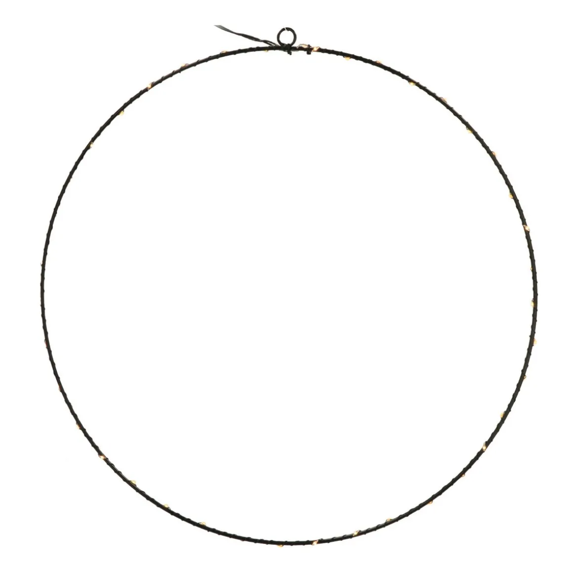 Het stevige metalen frame heeft een diameter van 40 cm en is omringd met maar liefst 40 LED-lichtjes, zodat het licht mooi verspreid wordt. Het unieke van deze metalen ring is dat je ‘m zelf naar eigen smaak kunt decoreren. Zo kun je er kerstballetjes in (of omheen) hangen, je kunt een hangende kerstversiering (zoals een uiltje) in het midden van de ring hangen of de ring omkleden met natuurlijke kerstdecoratie. Bovenaan het metalen frame zit een ringetje waaraan de ring kan worden opgehangen. De LED-verlichting werkt op 3 AA batterijen.