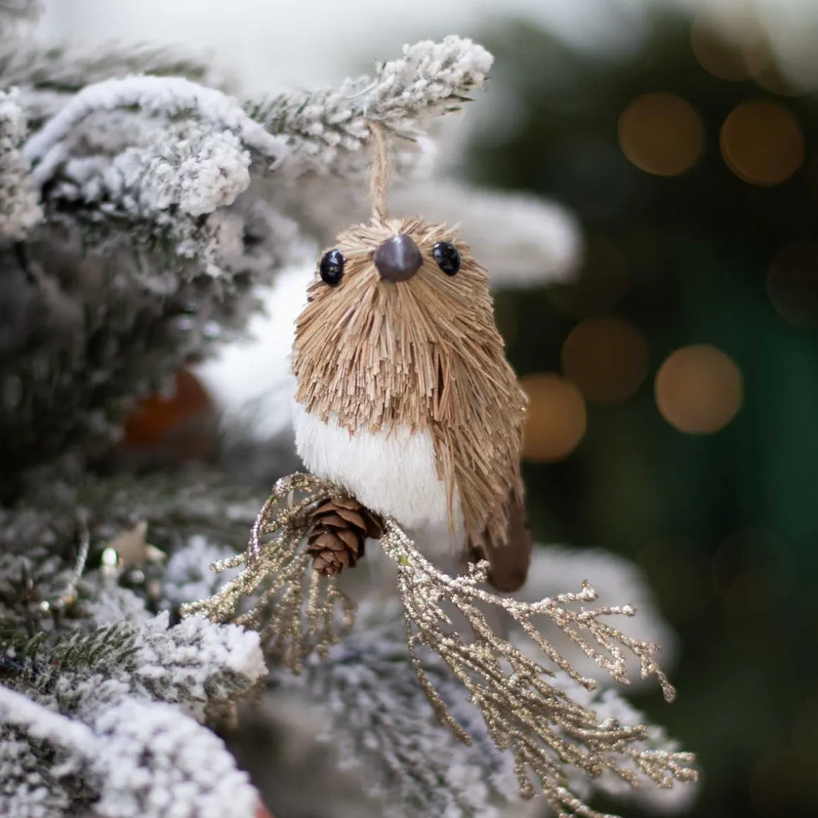 Deze elegante kerstversiering mag zeker niet ontbreken als je je huis en kerstboom het liefste decoreert met natuurlijke versieringen en accessoires. Combineer dit leuke vogeltje met onze bessen-of dennenappel slingers en andere bosdieren zoals uiltjes en hertjes voor een prachtig geheel.