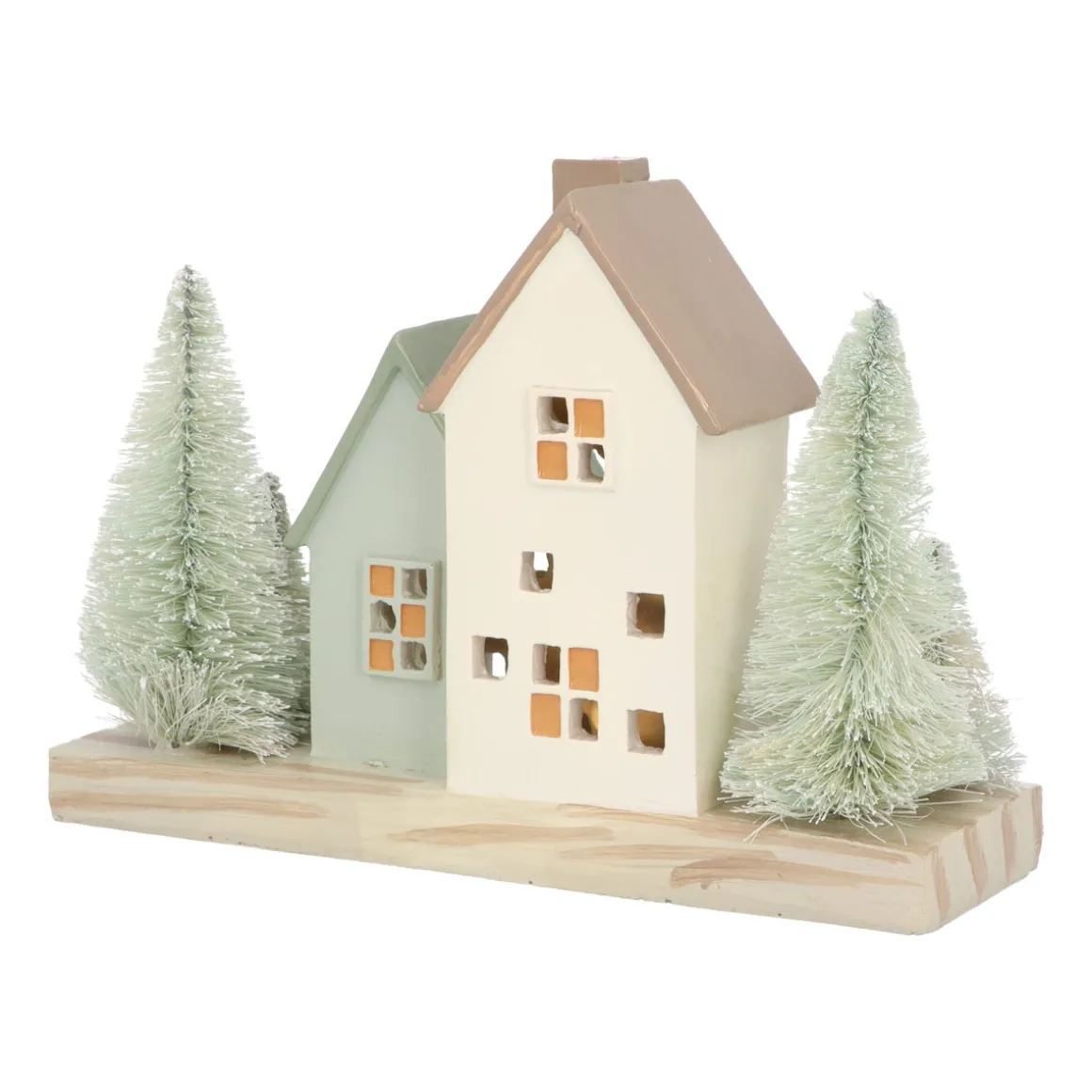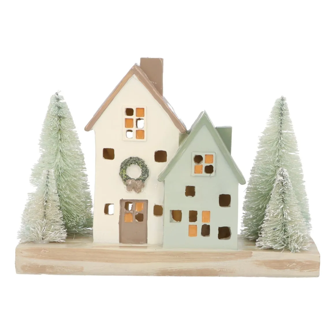 Huisjes Met Bomen | Met Led | Groen-crème | 21cm