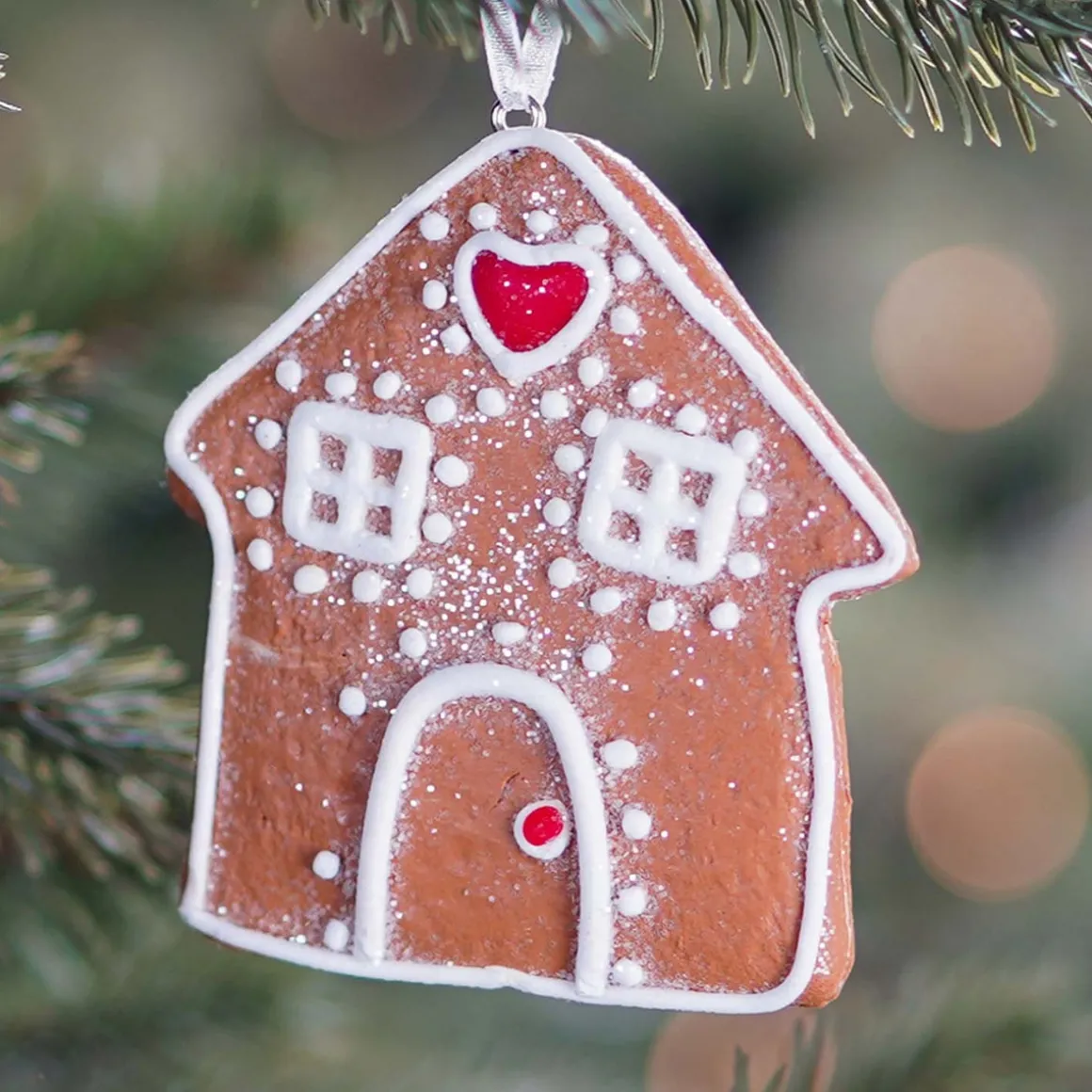 Mooie kersthanger van een een peperkoekhuisje met een hartje, handgemaakt van klei.
