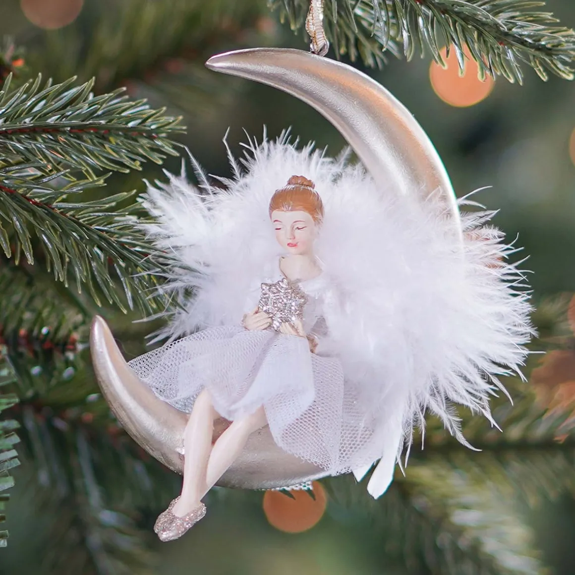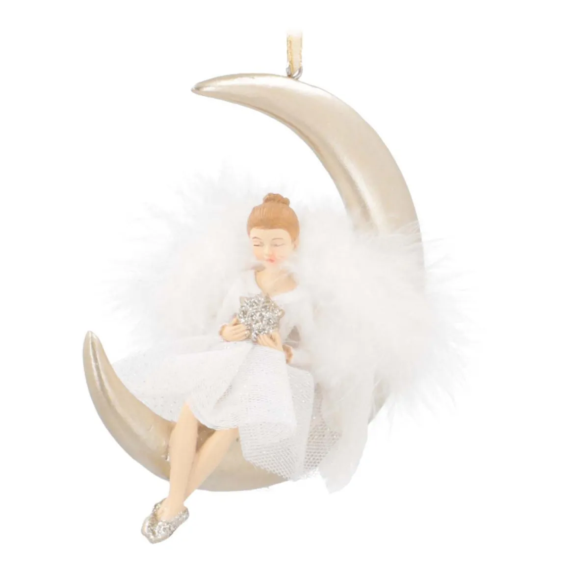 Kersthanger Maan Met Engel | Polyresin | 13cm
