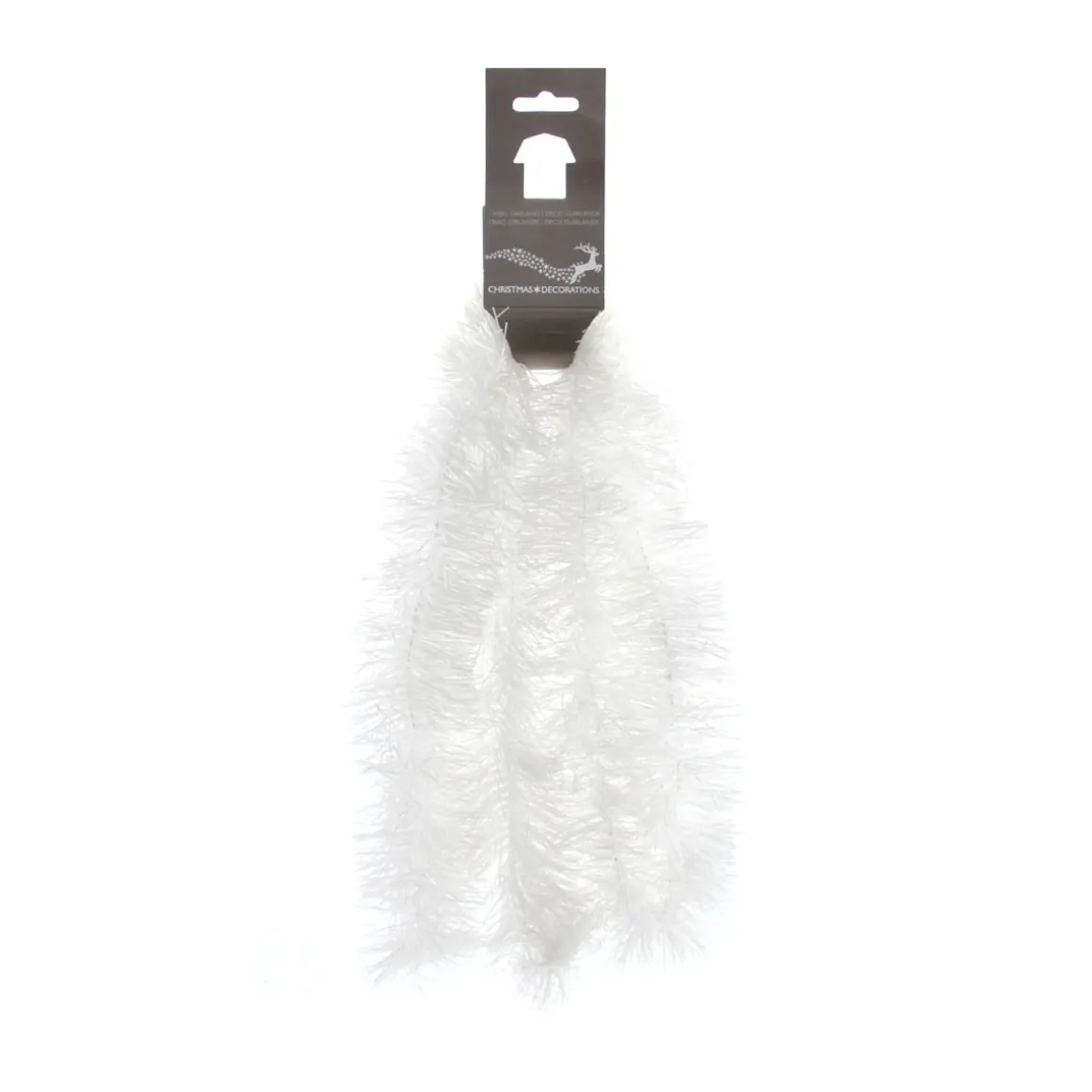 Sierlijke kerstslinger in de kleur melkwit, glanzend. De slinger is 270cm lang en heeft een dikte van 7,5cm. Zeer decoratief in kerstboom of guirlande.