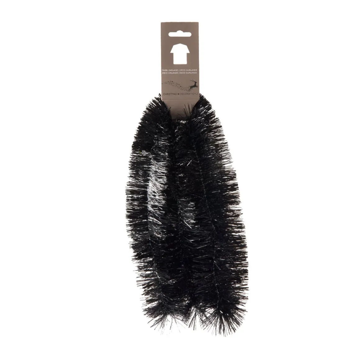Sierlijke kerstslinger in de kleur zwart, glanzend. De slinger is 270cm lang en heeft een dikte van 7,5cm. Zeer decoratief in kerstboom of guirlande.