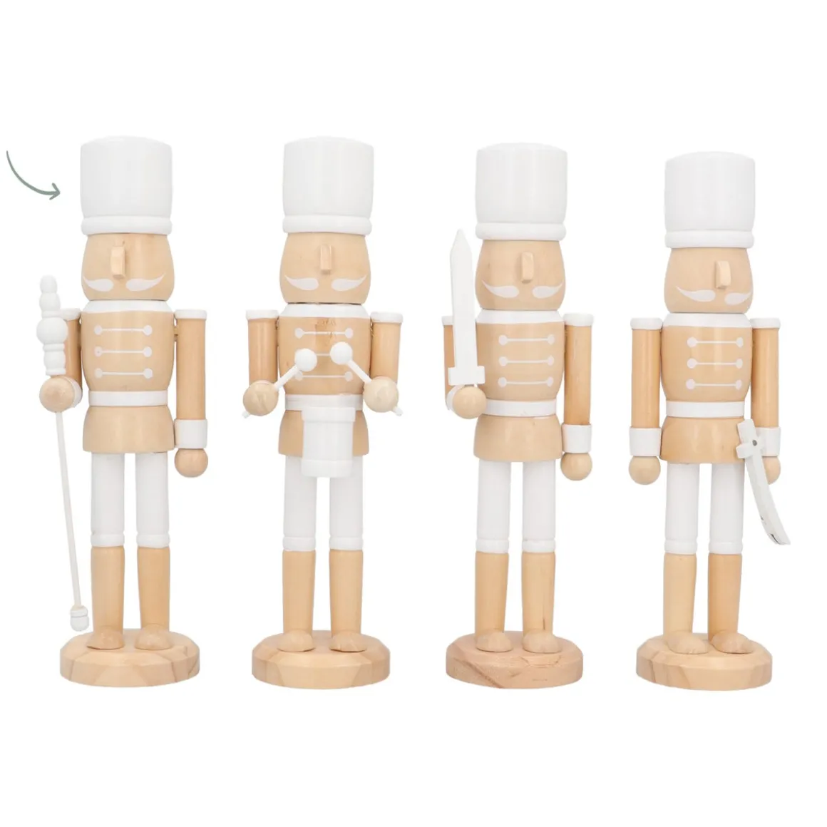 Deze elegante notenkraker van 25 cm, uitgevoerd in wit en goud, houdt trots een stok vast en straalt klassieke kerstsfeer uit. Gemaakt van stevig dennenhout en afgewerkt met een prachtige glans, is deze notenkraker een stijlvolle toevoeging aan je feestelijke inrichting. Zet hem op een prominente plek in huis om direct een nostalgische en warme sfeer te creëren. Deze notenkraker is verkrijgbaar in meerdere designs, zoals met een trommel of zwaard. Combineer ze voor een prachtig kersttafereel.