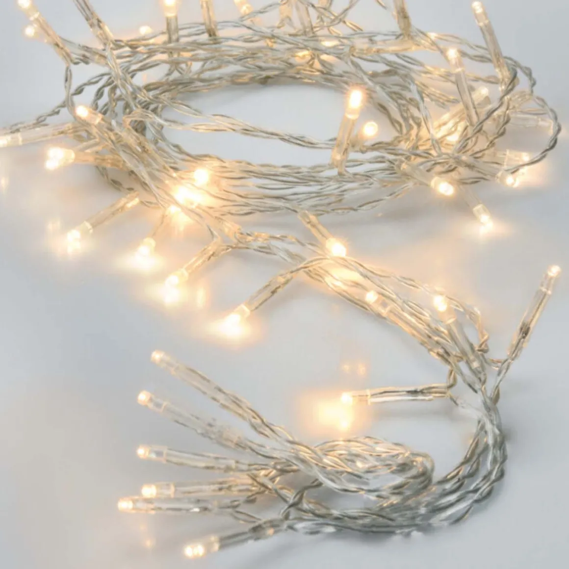 Sfeervolle, warm-witte LED lampjes. Dit snoertje met 50 LED lampjes zorgt voor een prachtig licht in je mini-kerstboom of doe-het-zelf decoratie.
