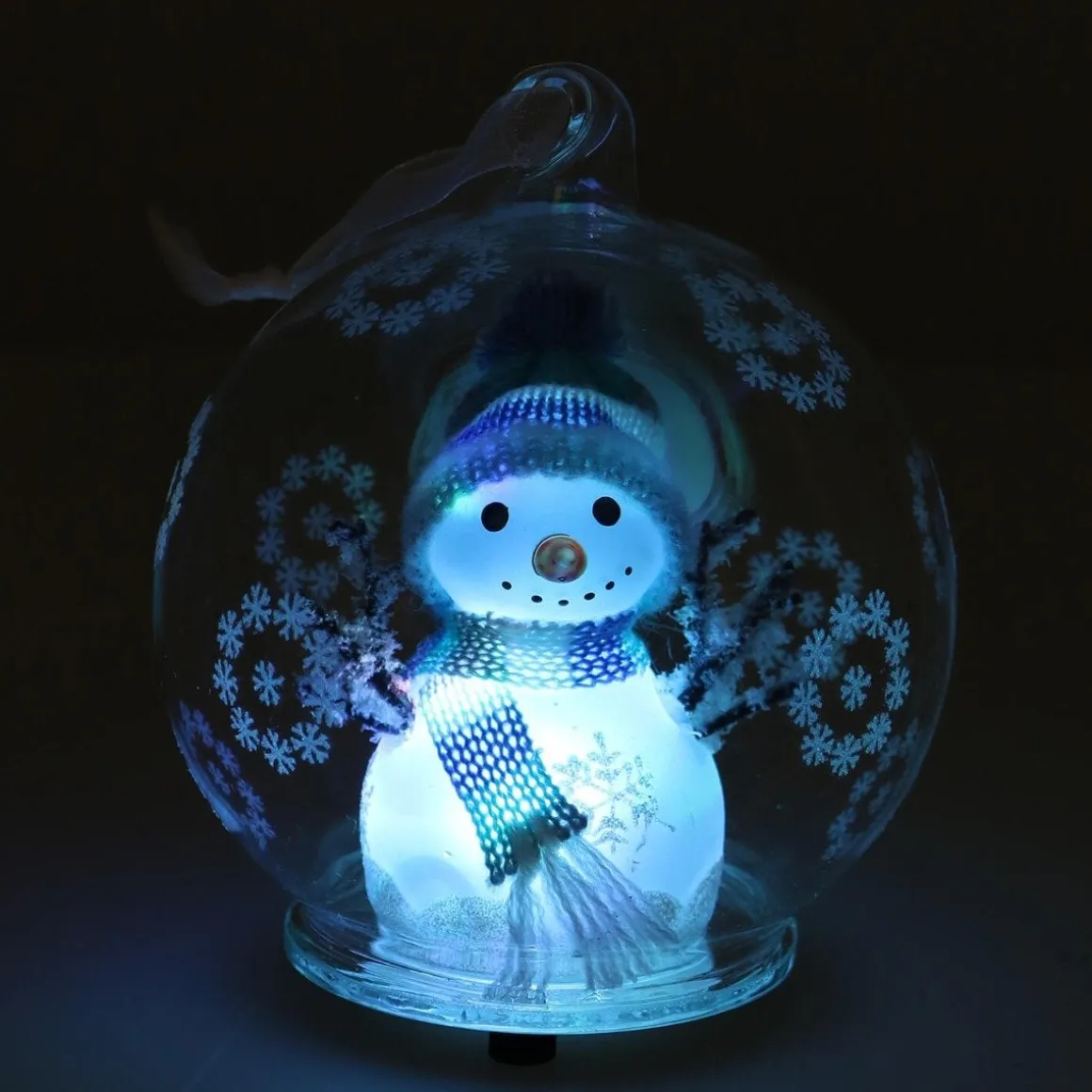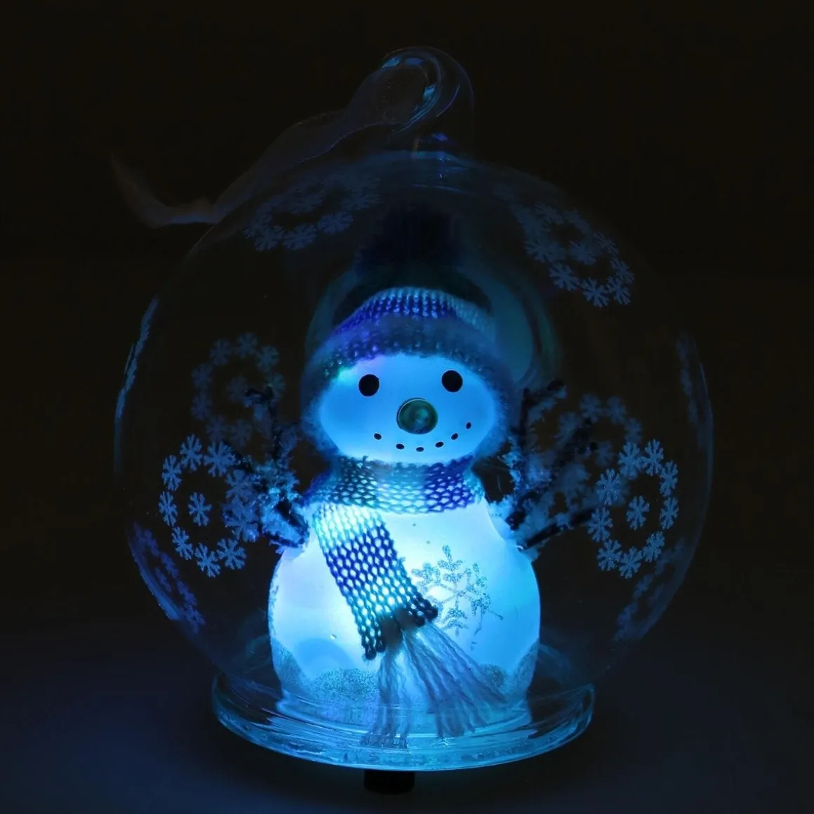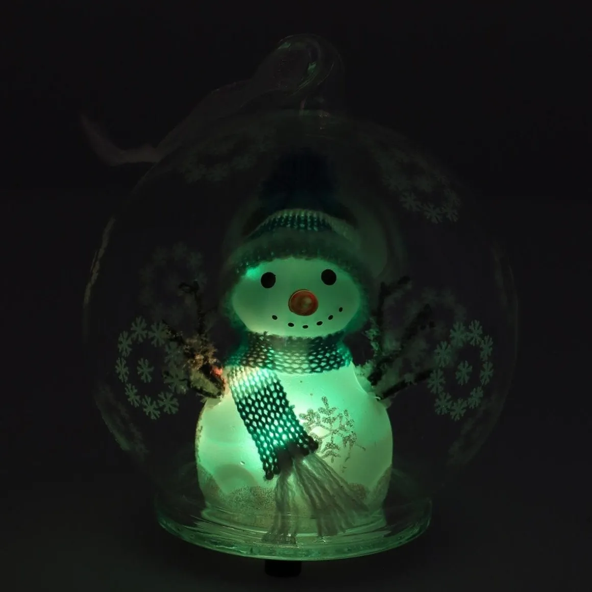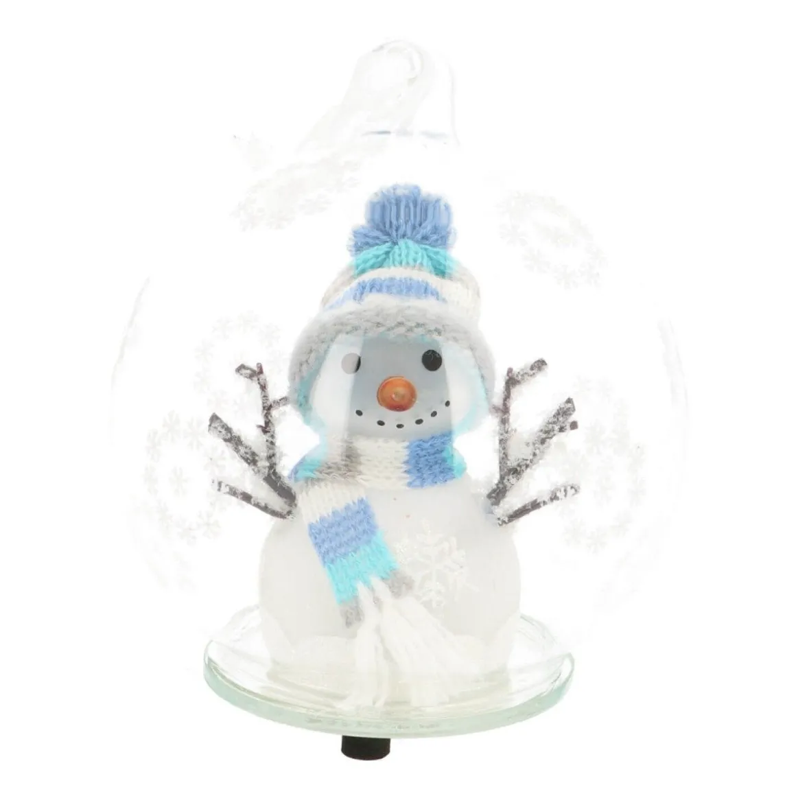 LED Sneeuwman – Glazen Kerstbal – 10cm – Blauw
