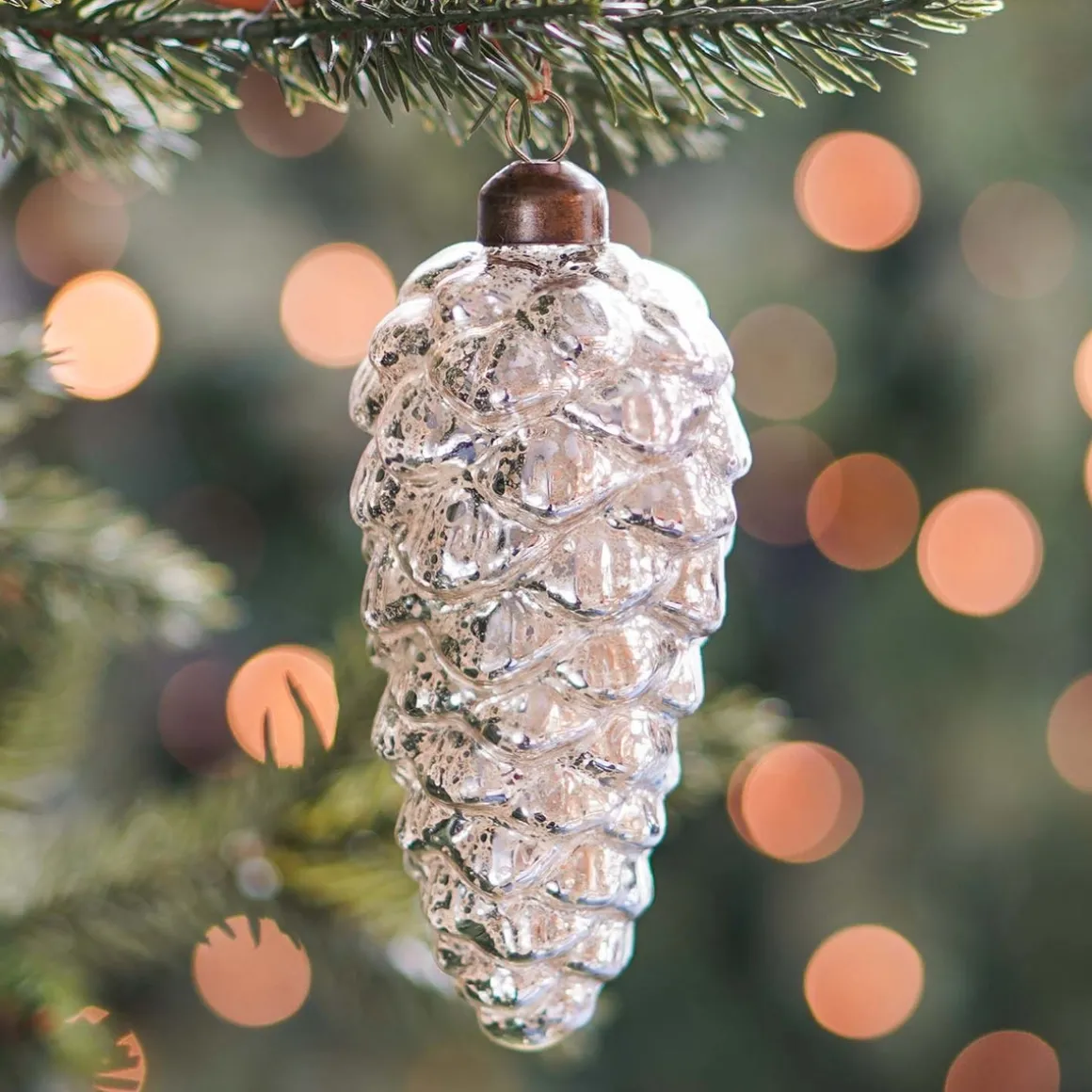 Luxe Kerstbal Dennenappel | Antiek-zilver | Glas | 12cm