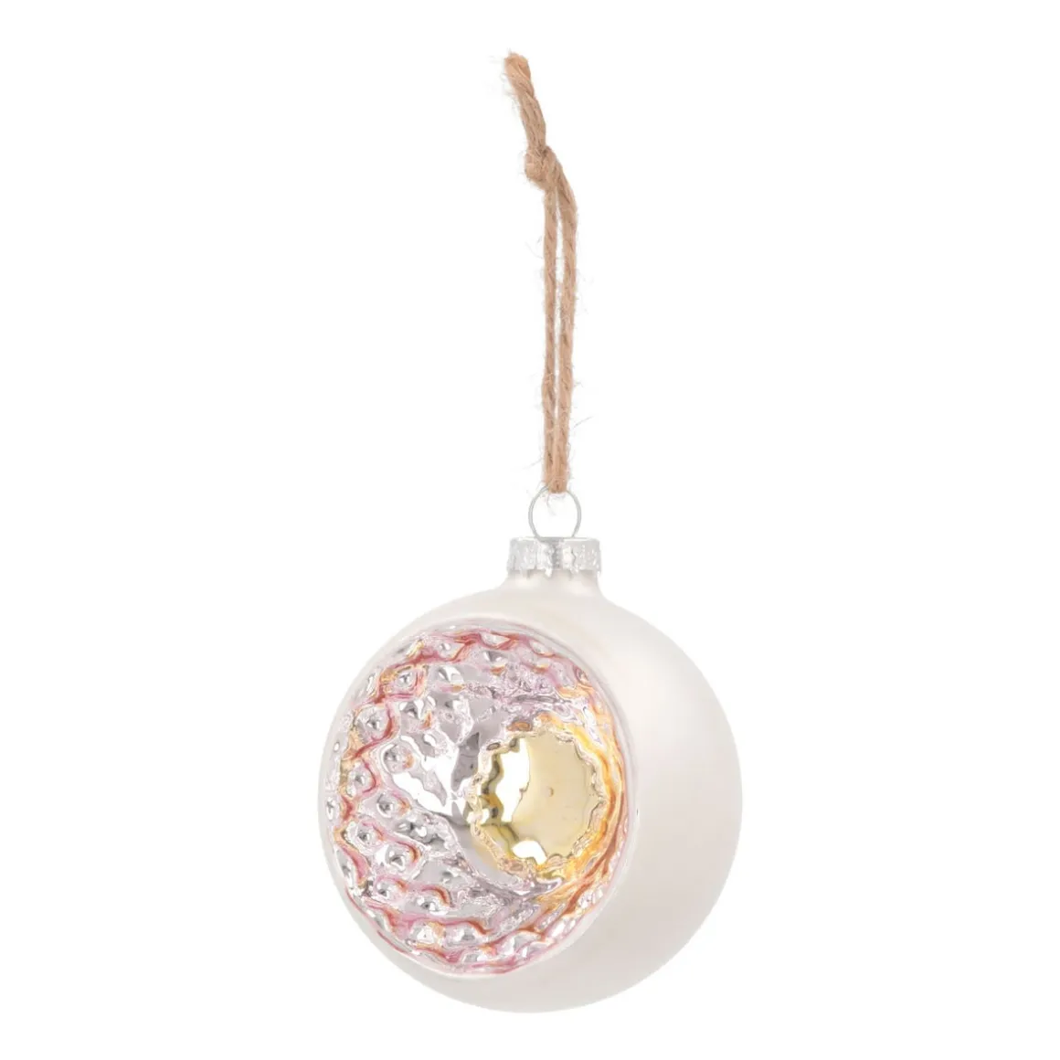 Deze mat zilveren kerstbal met reflex effect past zowel in een uitbundige boom met een retro knipoog als in een romantische sfeer. Het hoogwaardige matte glas geeft een moderne uitstraling, terwijl de zachtroze reflector zorgt voor een subtiele en mooie weerspiegeling van het omgevingslicht. Past perfect bij andere romantische kerstversieringen.