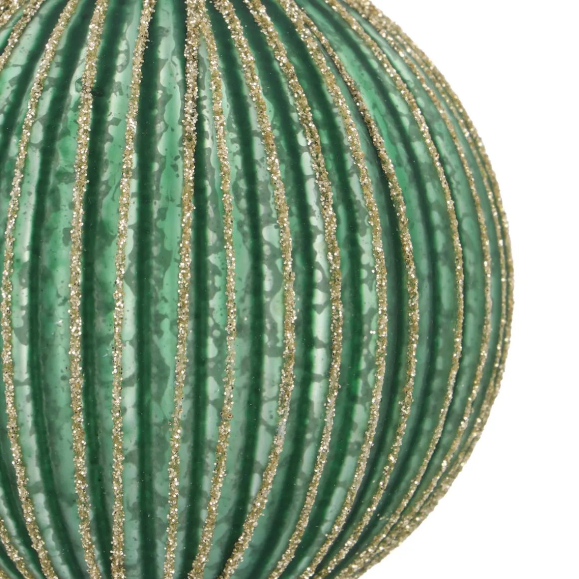 Luxe Kerstbal Verticaal Relief Met Glitter | Glas | Groen-goud | 8cm