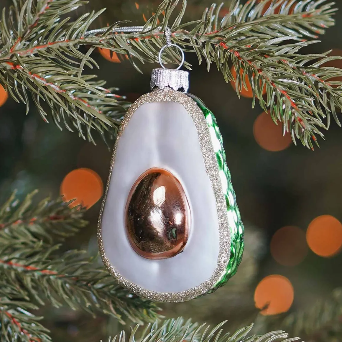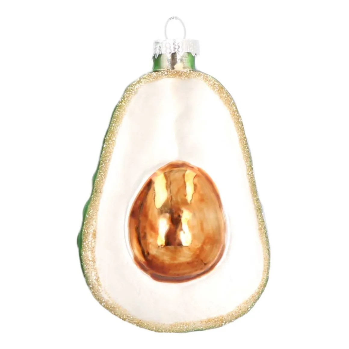 Zeer komische avocado kerstboomhanger, gemaakt van glas. In klassieke kleur groen met een afmeting van 9 cm. Het populaire etenswaar is een superleuke accessoire voor in de kerstboom voor alle avocado liefhebbers.
