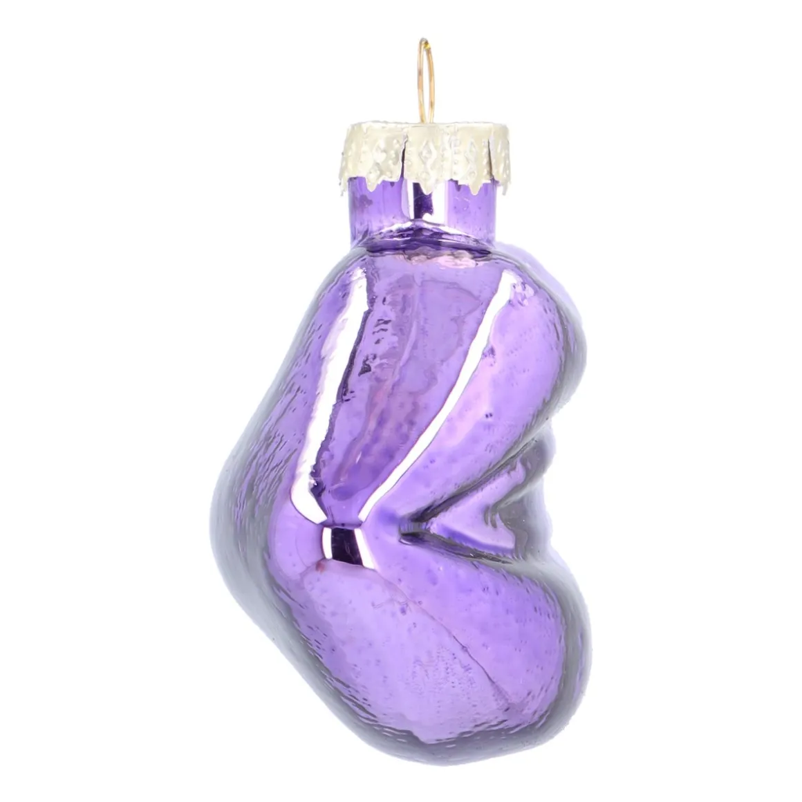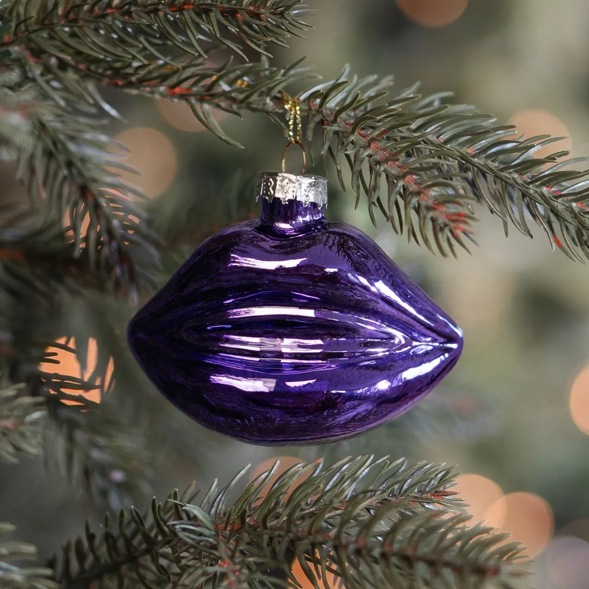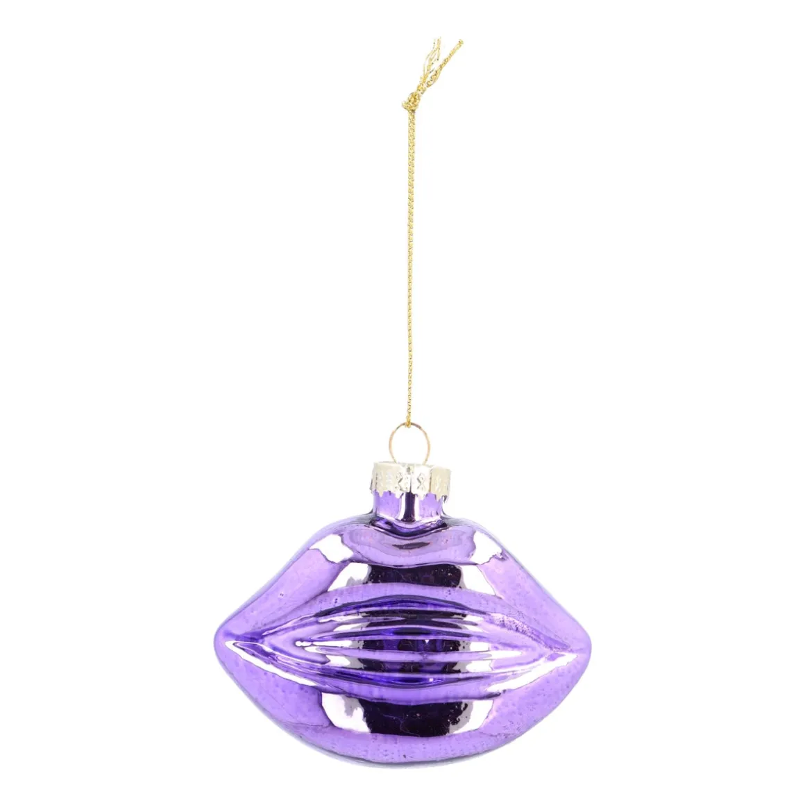 Waarom is deze paarse glazen kersthanger met lippen zo leuk?