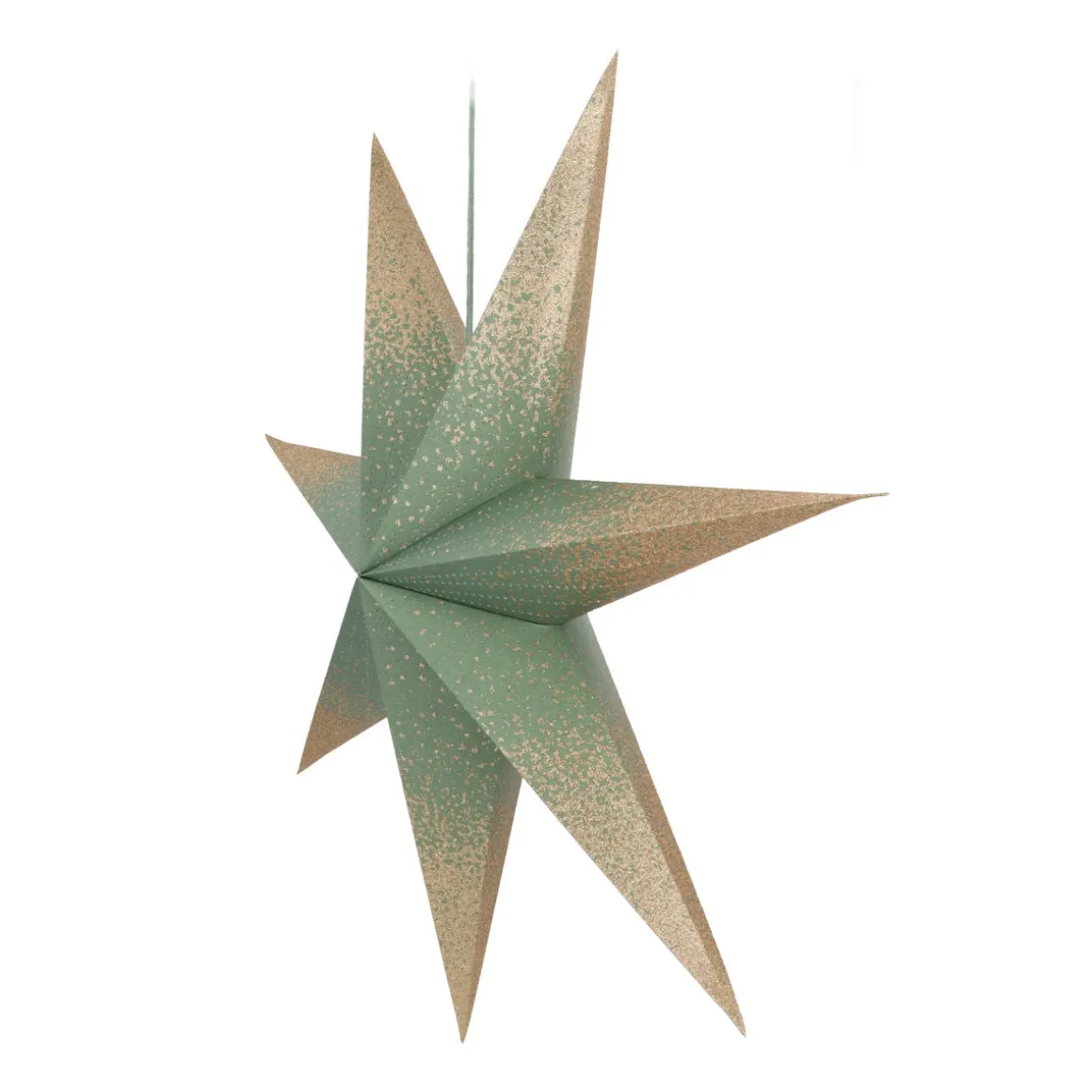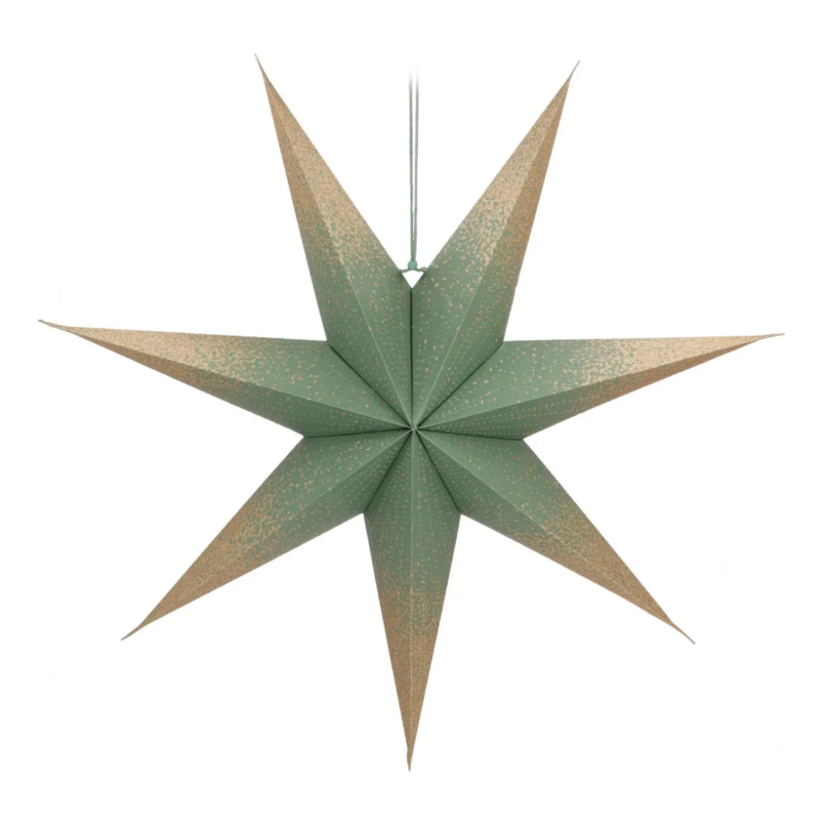 Breng je interieur in sfeervolle kerststemming met deze stijlvolle groene 7-punts papieren kerstster van 60 cm groot. De punten van de ster zijn versierd met champagnekleurige glitters.