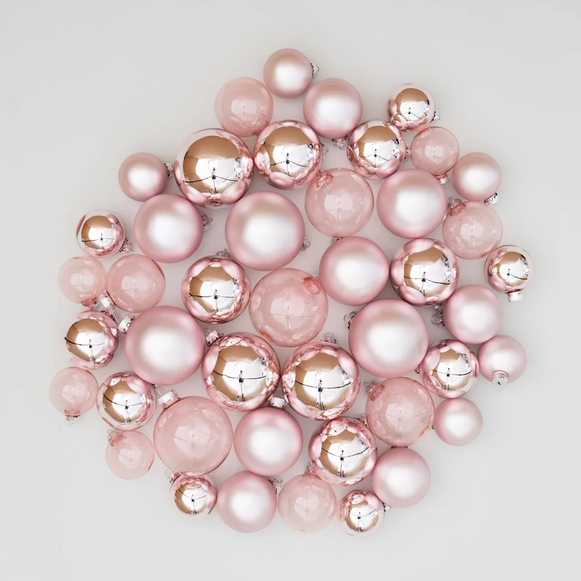 Een prachtige kerstboom versieren begint met het leggen van een goede basis. En met deze set van 44 glazen kerstballen in de modekleur lichtroze heb je hiervoor alles in huis. Deze set bevat een perfecte mix van matte, glanzende en transparante ballen. Verschillende structuren en groottes zorgen ervoor dat je boom eruit ziet alsof hij door een van onze stylisten is gedecoreerd! De 44 glazen kerstballen variëren in grootte tussen 4 en 8 cm. De set wordt geleverd in een handige kofferset wat het opbergen voor volgend jaar super eenvoudig maakt.