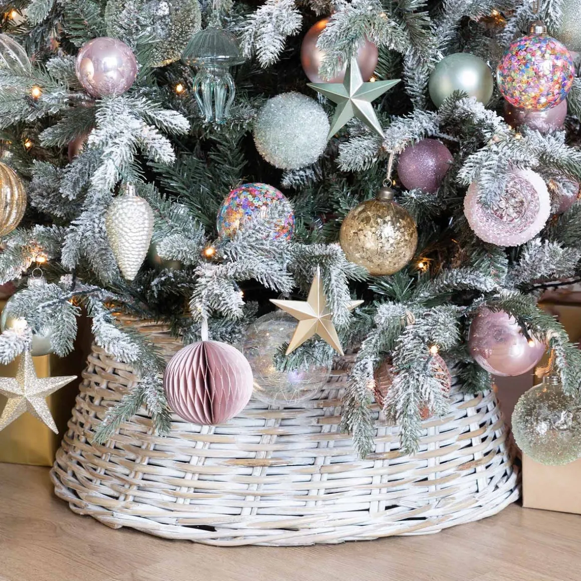 Deze kerstboommand is de perfecte oplossing wanneer je de stam of standaard van je kerstboom wilt verbergen én een stukje extra sfeer wilt toevoegen aan het groen van je boom. Met deze luxe, whitewash rotan kerstboommand gaat dat zeker lukken. Of je nu een kunstboom hebt of een echte kerstboom, deze mand geeft ‘m een natuurlijke uitstraling.