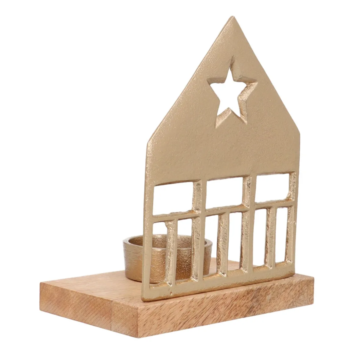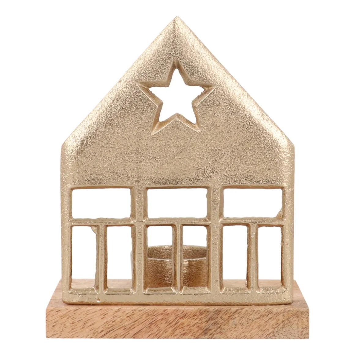 Dit gouden aluminium huisje met een schattig raampje, is perfect om je kerstdecoratie net dat beetje extra te geven. Zet er een waxinelichtje achter en zie hoe het warme licht door het raampje schijnt, waardoor elke ruimte meteen een knusse sfeer krijgt. Dit huisje van 13 cm breed en 19 cm hoog past op de vensterbank, in een kast, op de schouw of in het raam. Combineer het met andere varianten om een sfeervol rijtje te creëren dat je kerstdecoratie compleet maakt.