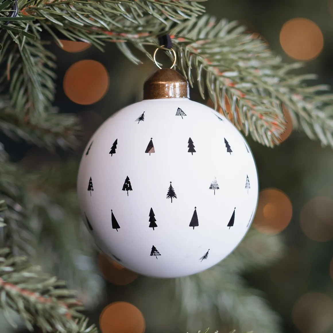 Deze kerstbal past perfect in een industriële kerstboom. Voeg extra warmte toe door koperen accessoires te gebruiken, of hou het geheel in zwart-wittinten voor een moderne, grafische look.