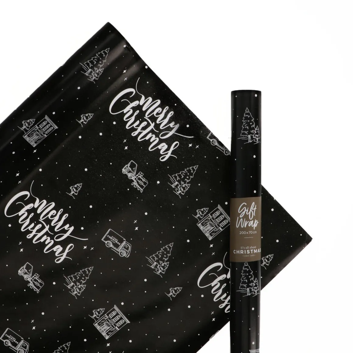 Maak van ieder cadeau onder de kerstboom een heus statement met dit prachtige inpakpapier. Deze rol cadeaupapier straalt 100% kerstsfeer uit! Schattige authentieke huisjes, kerstbomen, een heftruck uit ons eigen magazijn een heuse kerstbus vormen het design. Als klap op de vuurpijl staat de kerstgroet Merry Christmas in sierlijke letters geschreven.
