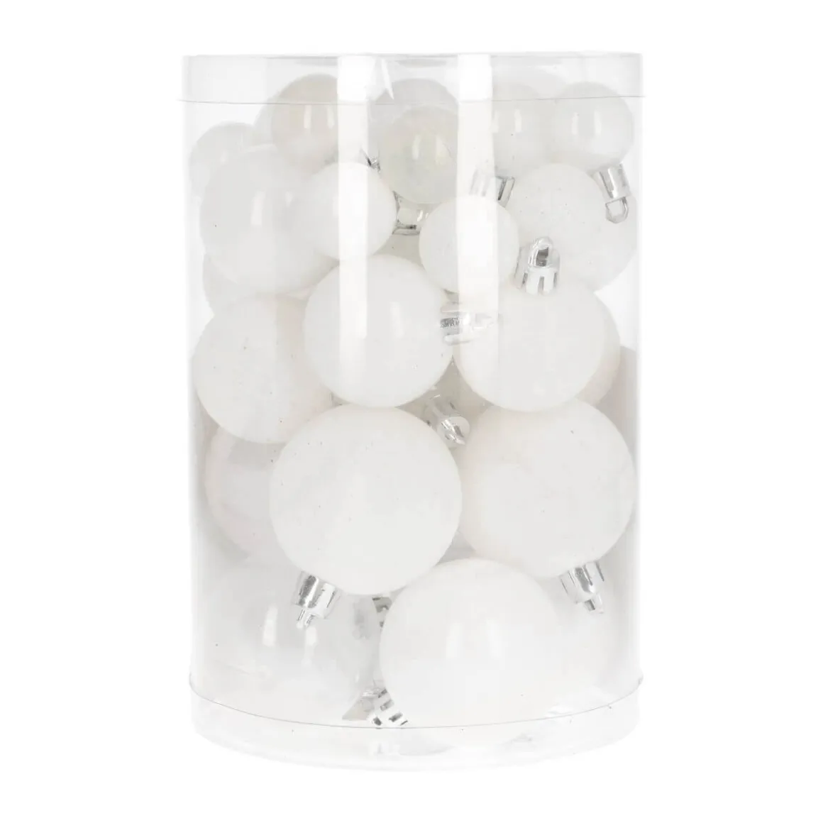 36 Kleine Kunststof Kerstballen Wit Mix In Koker