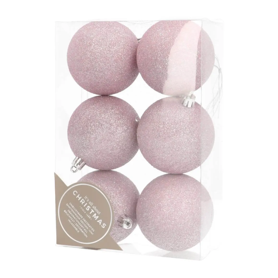 Mooie set van 6 kunststof kerstballen, zachtroze. De kerstballen hebben een doorsnede van 7 cm. Door meerdere sets te combineren, bijvoorbeeld met andere kleuren en maten, kun je je eigen unieke stijl creëren. Omdat ze van plastic zijn gemaakt, zijn ze praktisch onbreekbaar. Kleurcategorie: roze.
