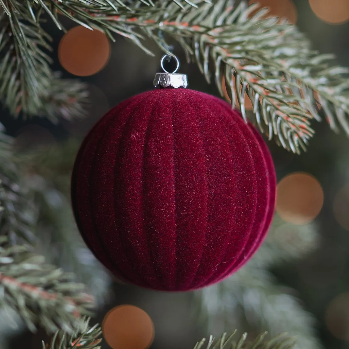 Bordeauxrode Fluwelen Kerstbal Met Reliëf