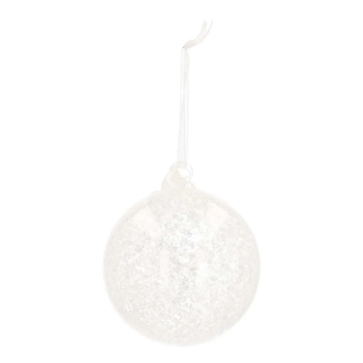 Luxe glazen kerstbal met sfeervolle ijsvlokken. Deze kerstbal is een echte eyecatcher in de boom.