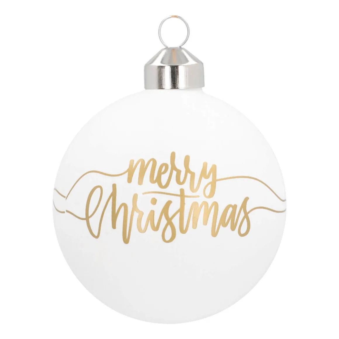 Glazen Kerstbal Wit Merry Christmas 8 Cm
