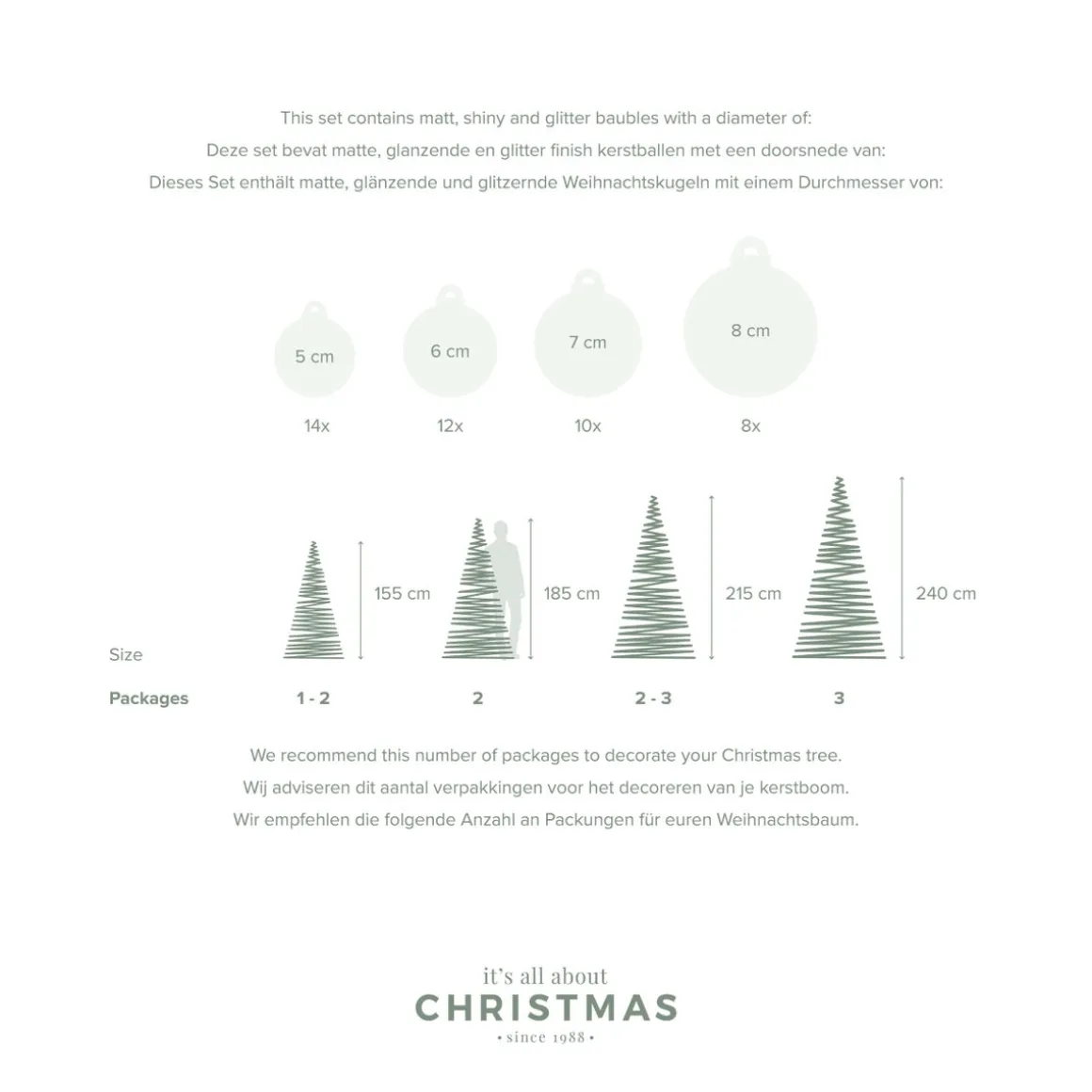 Deze set bestaat uit kerstballen met de volgende afmetingen: