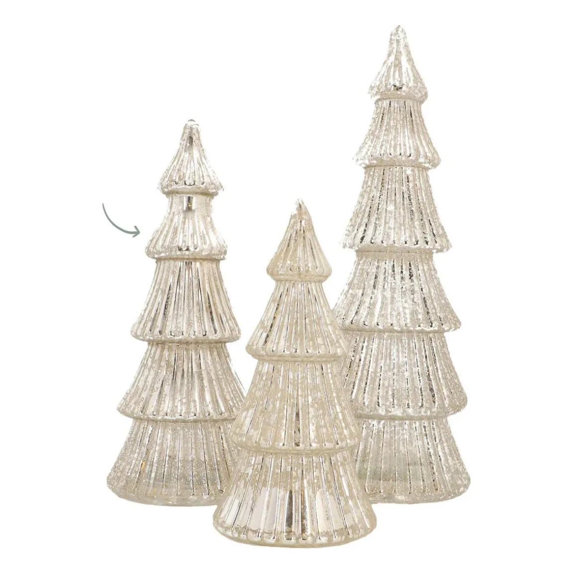 Zeer decoratieve kerstboom van glas in de kleur zilver. Deze kerstboom is 27 cm groot en heeft een sfeervolle uitstraling dankzij de LED verlichting. De kerstboom heeft dankzij zijn unieke, ietwat golvende vormen een moderne look.