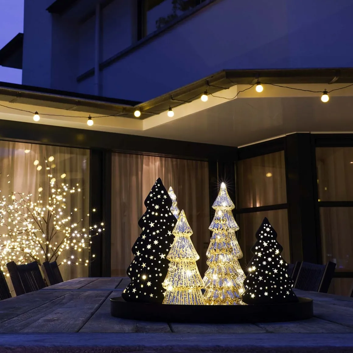 Dit decoratieve mini kerstboompje is voorzien van 10 warm witte LED’s binnenin die werken op batterij (exclusief). In de vensterbank, op tafel of op een fraai gedecoreerd dienblad: voor een prachtig kerstboompje zoals deze is altijd wel een mooi plekje te vinden. Hij zal ieder hoekje in huis verfraaien.