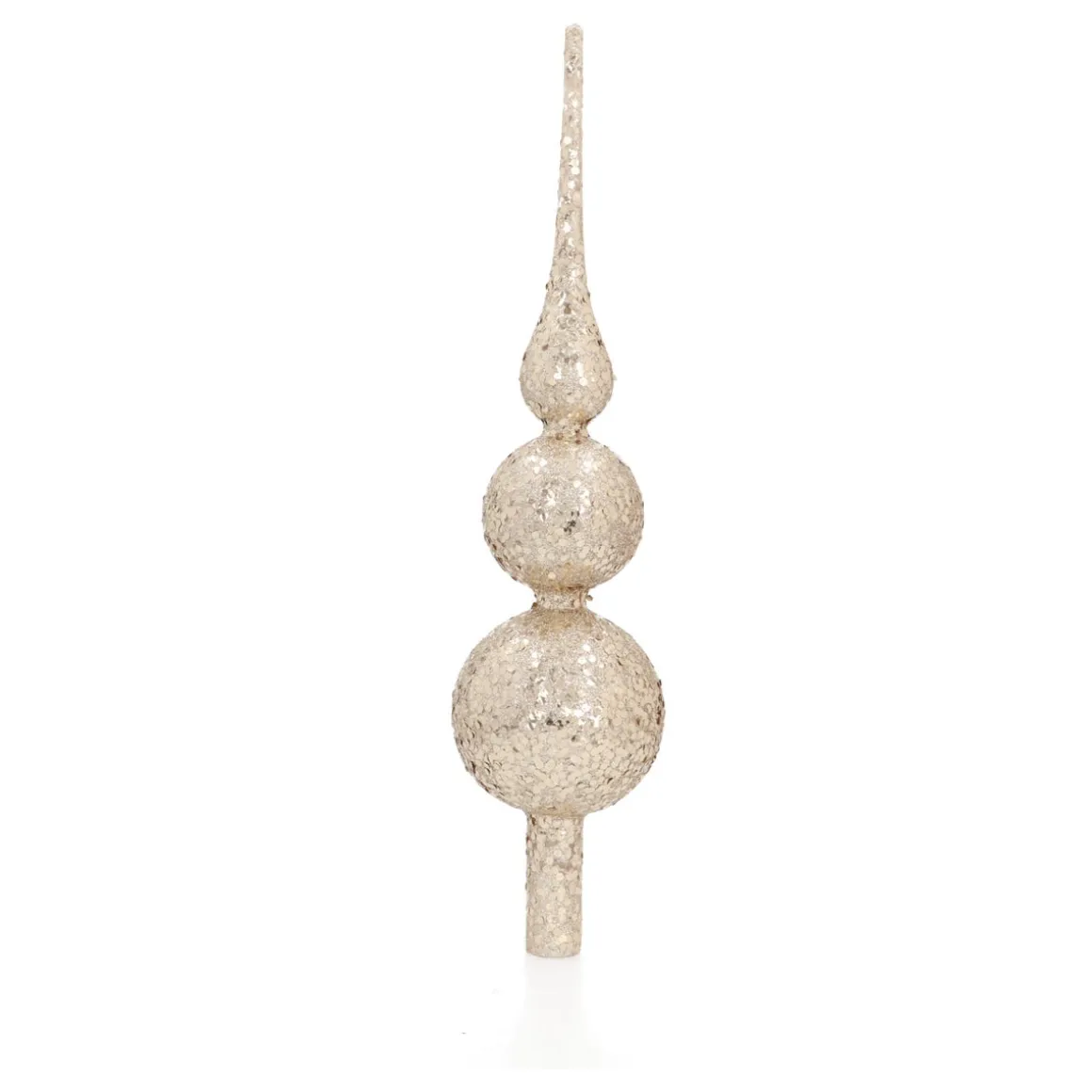 Waarom is deze lichtgouden glazen glitterpiek de perfecte finishing touch voor jouw boom?