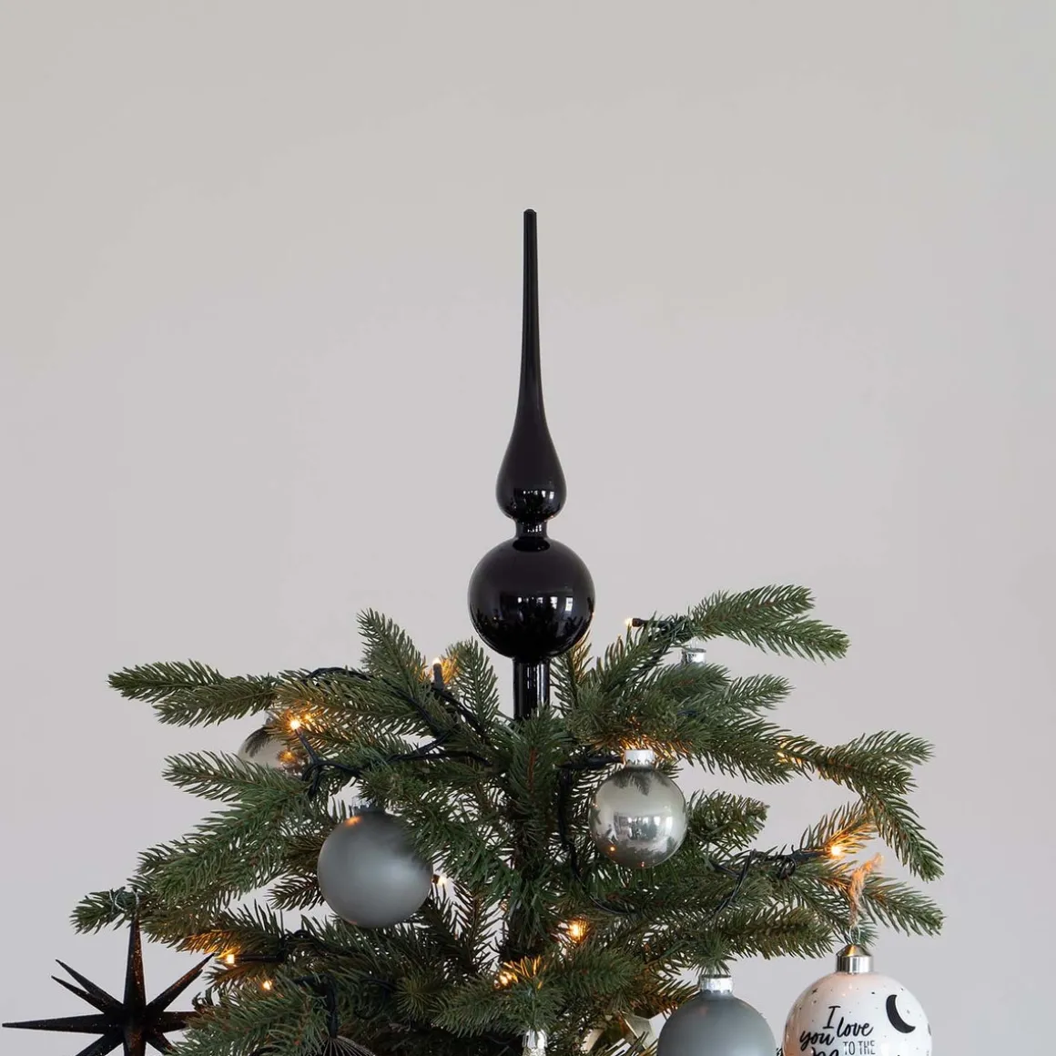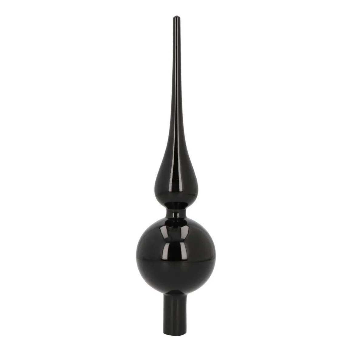 Mooie glazen kerstpiek, in glanzend zwart. Deze piek wordt geleverd in een handige kunststof koker.