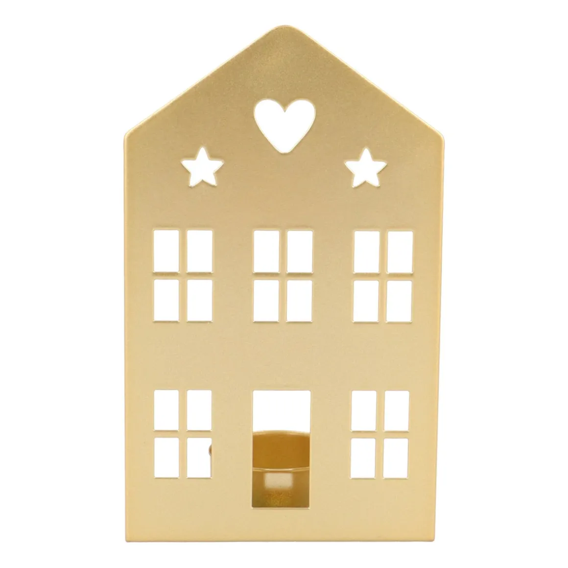 Breng de Hollandse charme in huis tijdens de feestdagen met dit gouden grachtenpandje. Zet een waxinelichtje achter het huisje en geniet van het zachte licht dat door de kleine ramen straalt. Dit zorgt meteen voor een warme, gezellige sfeer. Het grachtenpandje van goudkleurig metaal is 15 cm hoog en past door het neutrale design moeiteloos in elke woonstijl. Op de vensterbank geeft het een prachtig silhouet. Maar ook op een dressoir of in een (open) kast steelt het de show.