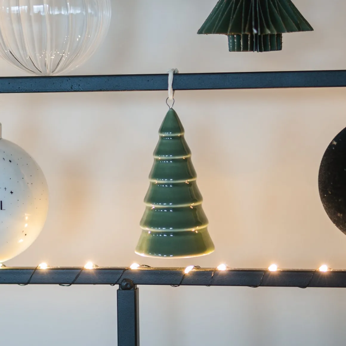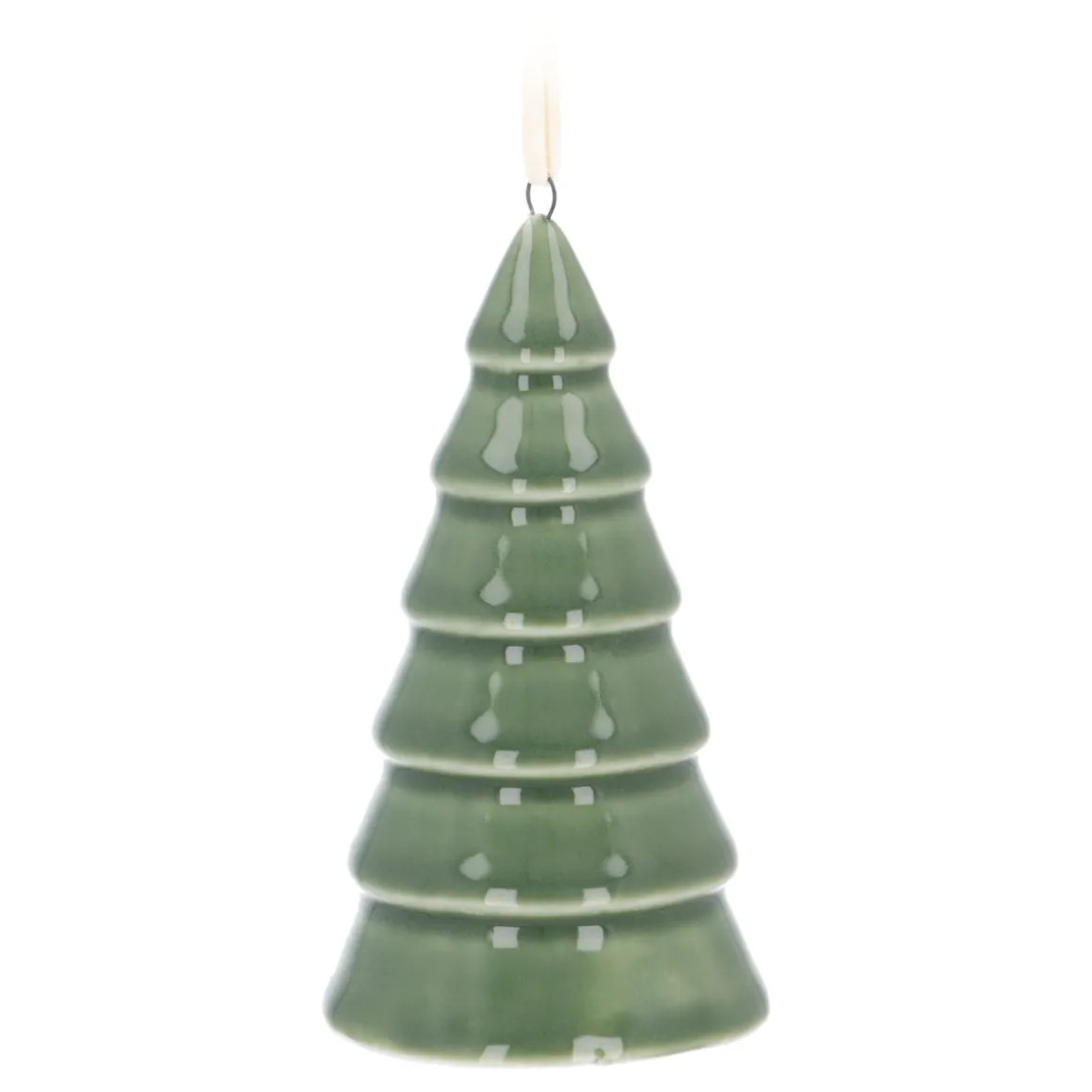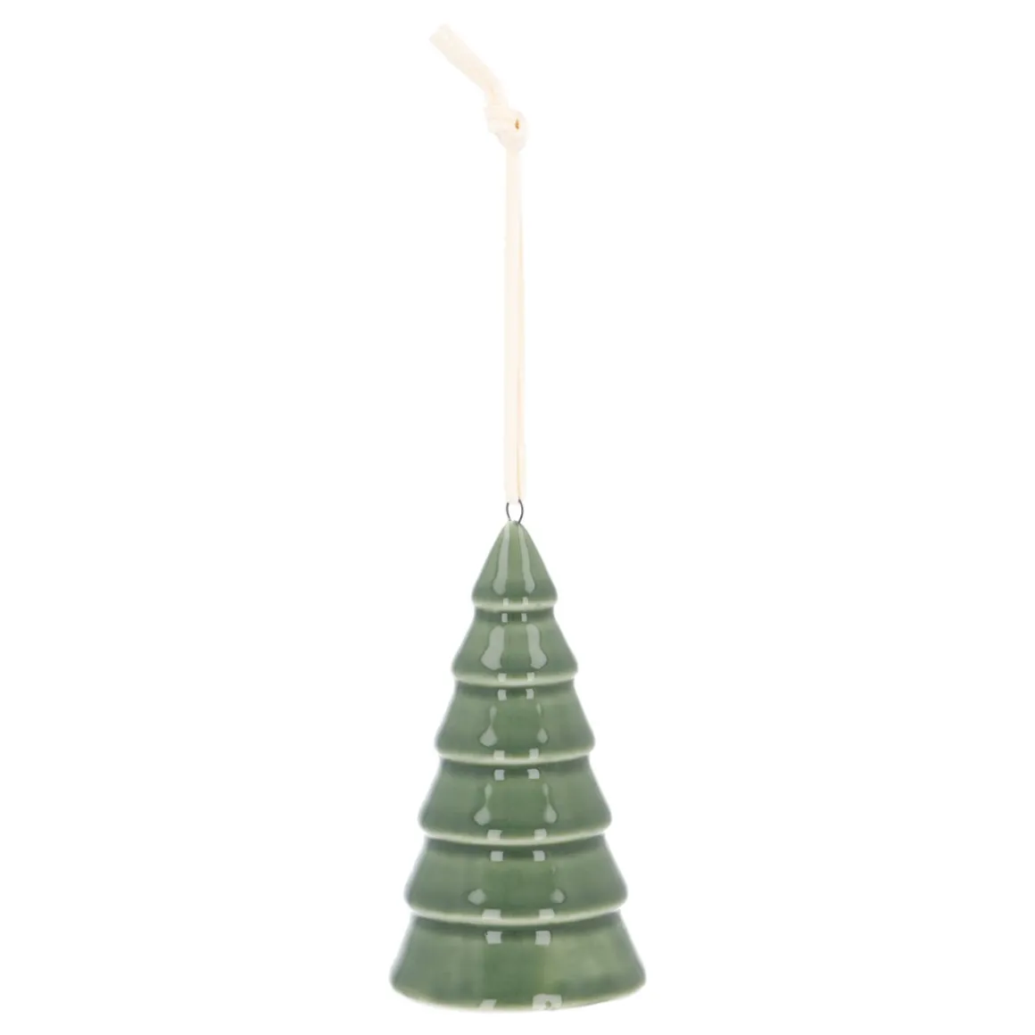 Dit kleine groene kerstboompje zorgt meteen voor sfeer in jouw kerstboom! Met z’n glanzende porseleinen afwerking, speelse laagjes en hoogte van 9 cm, past dit boompje perfect in elke feestelijke setting. En geen zorgen over zware materialen, want dankzij het holle ontwerp blijft het boompje licht en gemakkelijk hangen aan het bruine leren koordje.