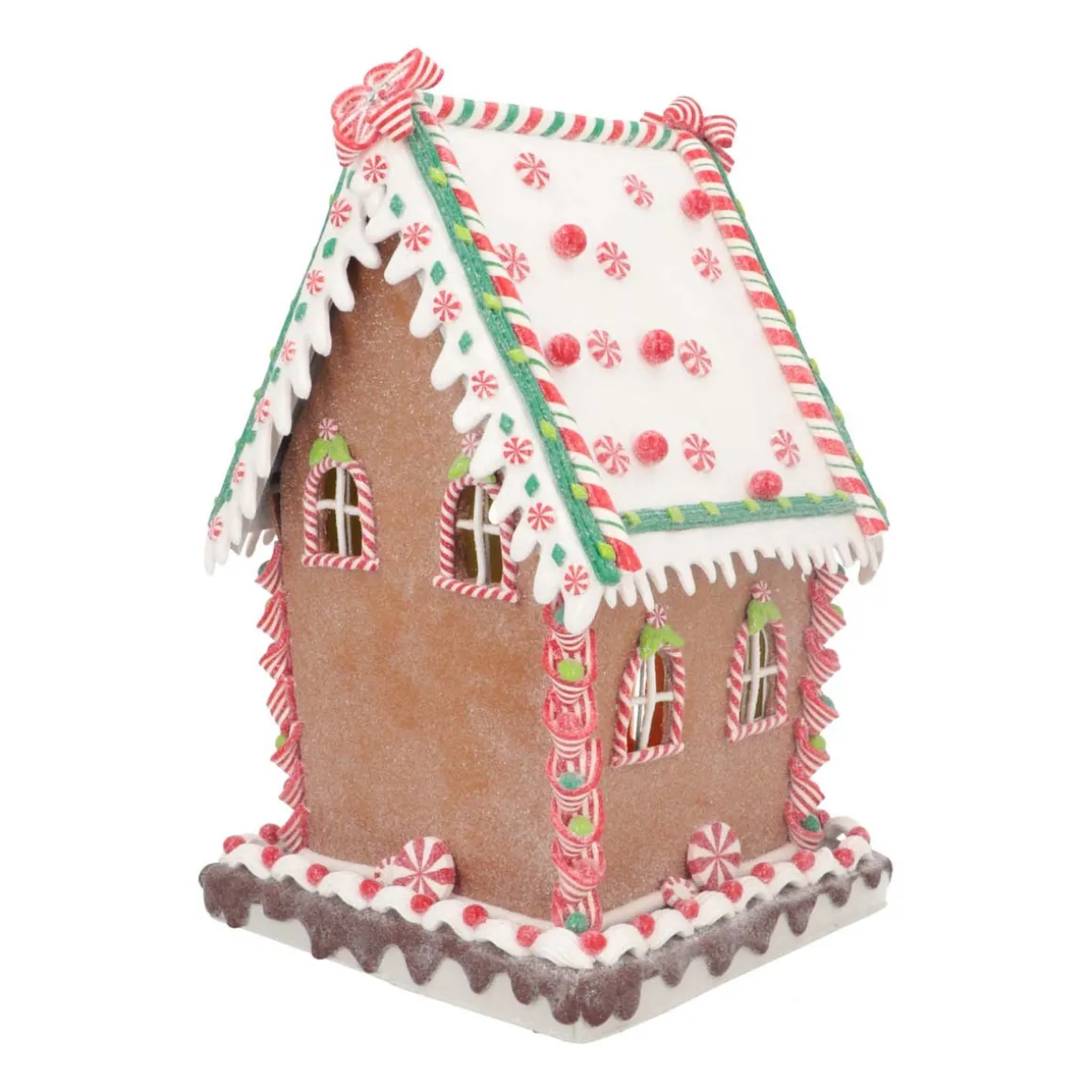 Prachtige handgemaakte groot gingerbread huisje met ledverlichting. Dit betoverende decoratieve kersthuisje is met liefde en vakmanschap gemaakt van kunststof klei om jouw kerstversiering een onvergetelijke charme te geven. Het heeft een peperkoeken mannetje en een kerstboom voor de deur, vrolijk gekleurde accenten en ziet er uit om op te eten. Het is handgemaakt, dus je weet zeker dat jouw huisje uniek gaat zijn.