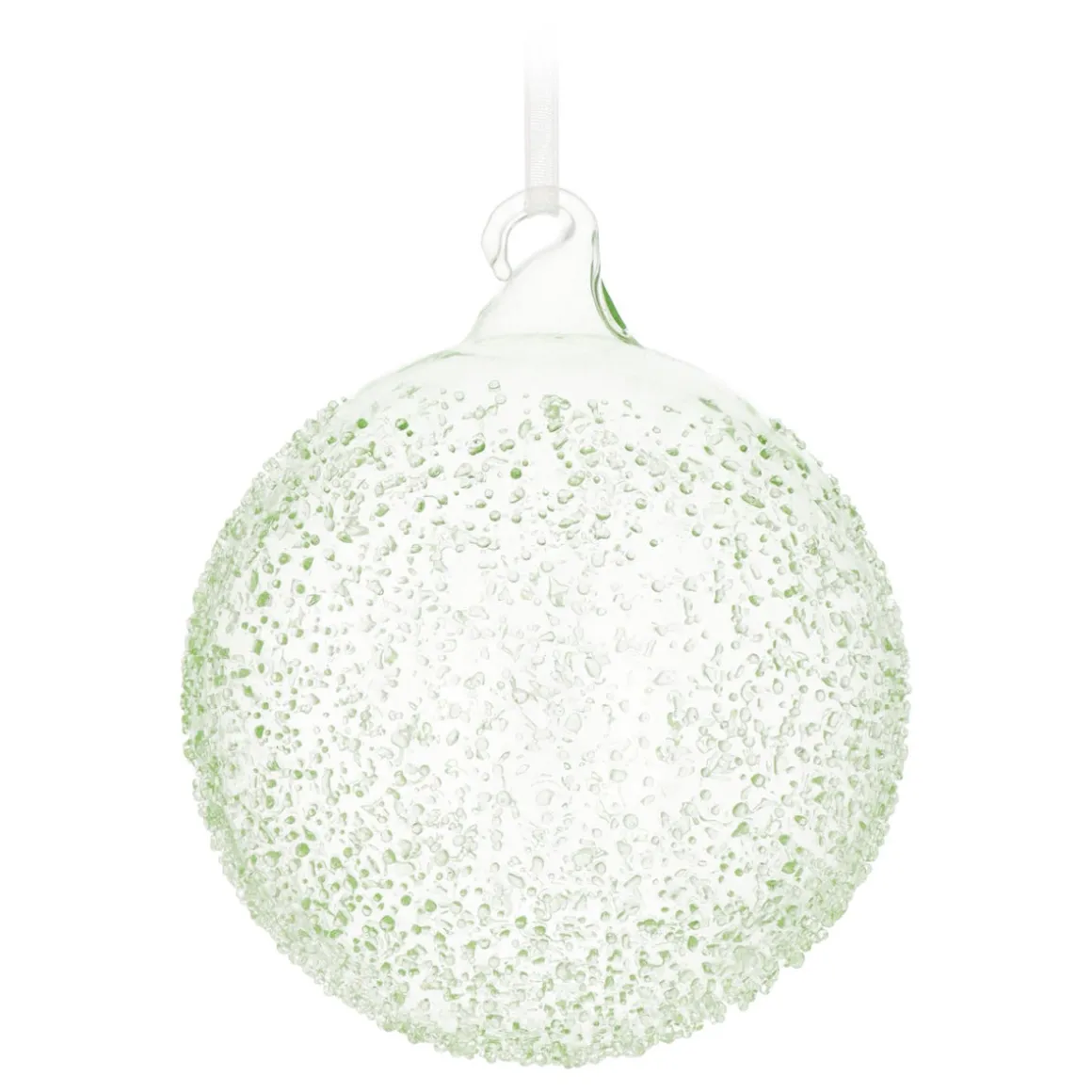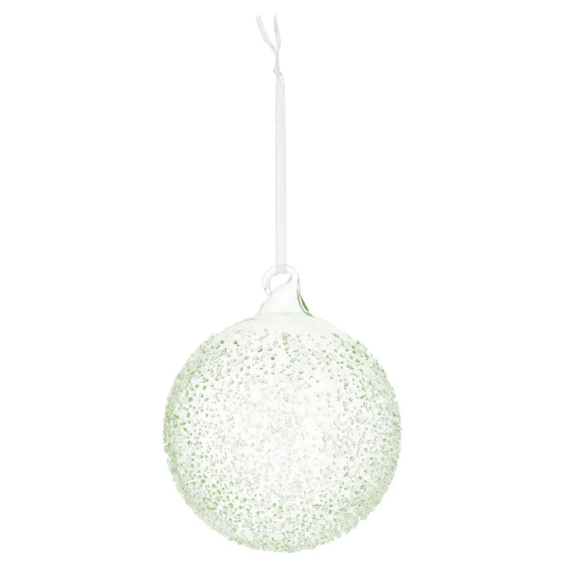 Laat deze lichtgroene kerstbal extra opvallen door ‘m te combineren met kleinere (groene) kerstballen. Omdat de spikkels het licht prachtig vangen, staat dit glazen kerstornament ook heel mooi voor het raam of in een vaas.