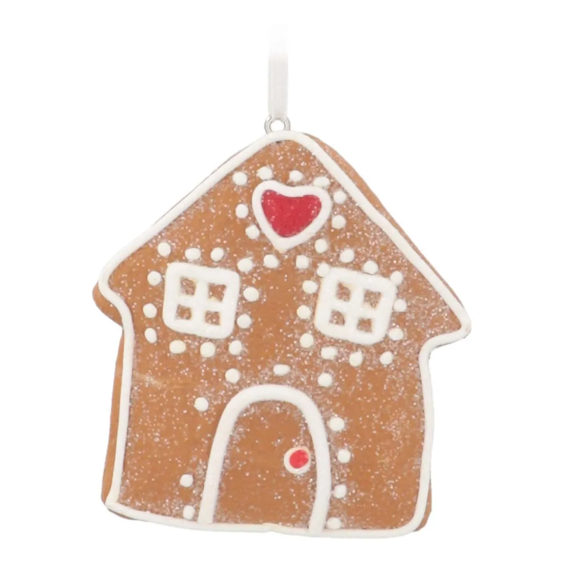 Mooie kersthanger van een een peperkoekhuisje met een hartje, handgemaakt van klei.