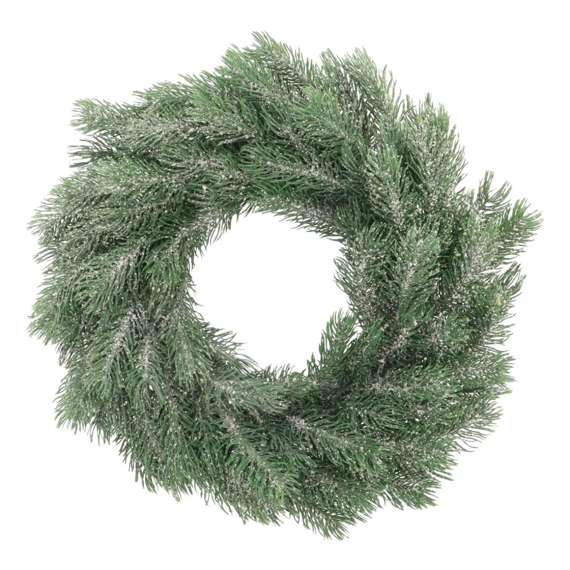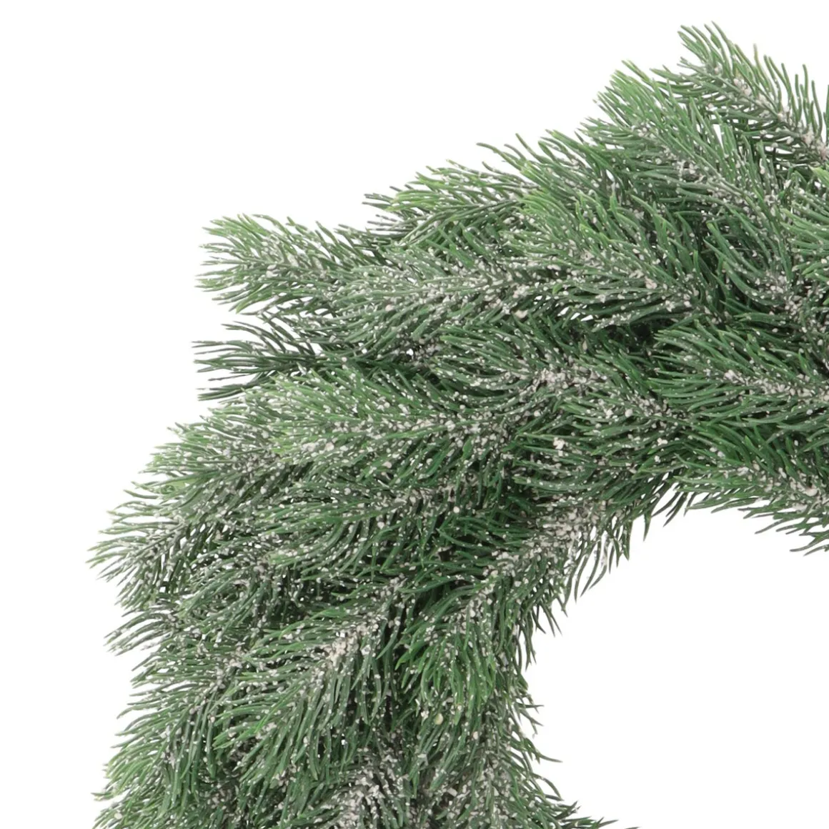 Decoratieve groene kerstkrans met een laagje sneeuw en een doorsnede van 35 cm. Deze krans is perfect voor DIY projecten! Dankzij het neutrale uiterlijk en de basis van piepschuim kan je een prachtige creatie maken van deze kerstkrans!