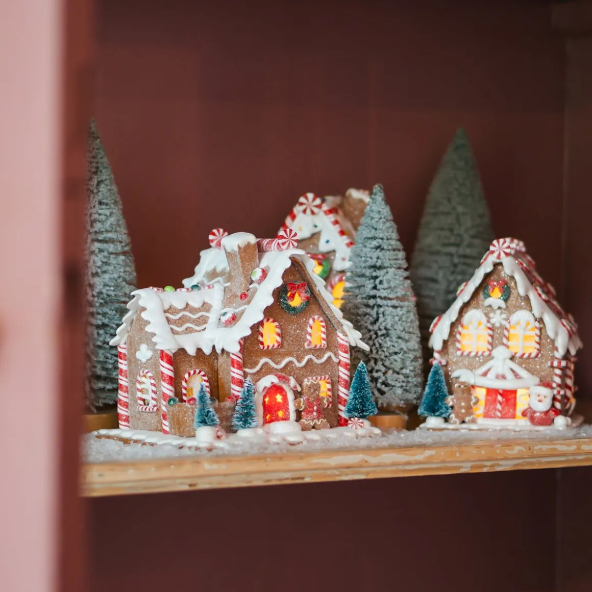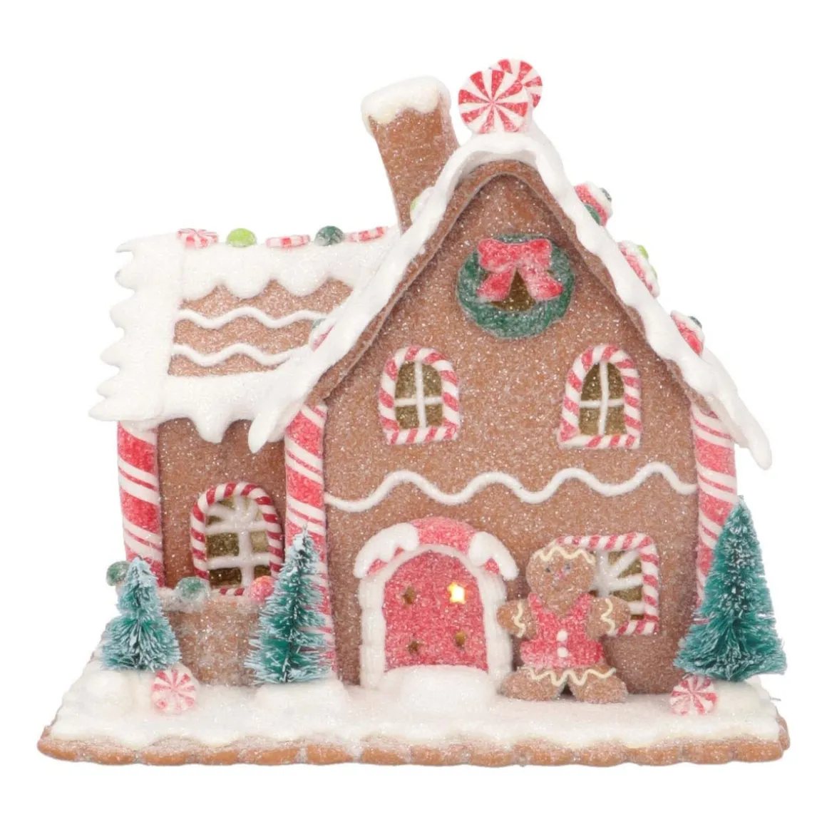 Dit stijlvolle peperkoekhuisje met boompjes en sneeuwlaag staat leuk op tafel of bijvoorbeeld in je vensterbank. Dankzij het fijne LED licht valt hij ook in het donker mooi op. Dit unieke tafereeltje is handgemaakt van klei, waardoor je altijd een uniek exemplaar krijgt. Zet het peperkoekhuisje neer en zet snel de lichtjes aan. Een fijne avond verzekerd! De batterijen van de verlichting zijn inbegrepen.