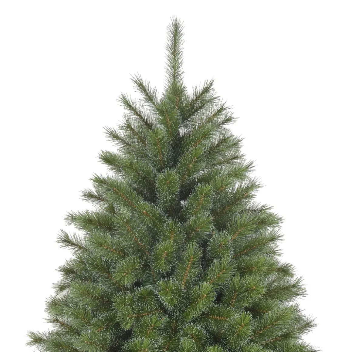 Zeer luxe kunstkerstboom uit onze premium serie Liv van 215 cm hoog. Deze kunstkerstboom ziet er uiterst authentiek uit en heeft een de look en feel van een echte dennenboom. Het verschil met een echte kerstboom is nauwelijks te zien. De diepgroene naalden met subtiele dauwdruppels op de puntjes van de naalden zien er prachtig uit en creëren een effect die zelfs een echte kerstboom niet kan bewerkstelligen.