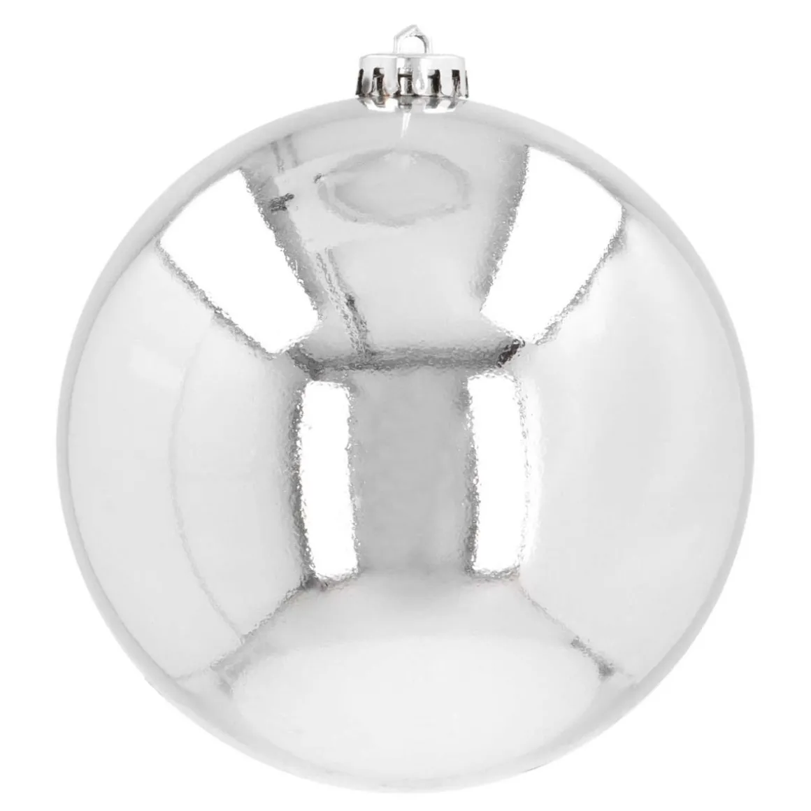 Mooie XL kunststof kerstbal met een doorsnede van 15cm, in glanzend zilver. Ook zeer geschikt om buiten te gebruiken. Gemaakt van onbreekbaar plastic.