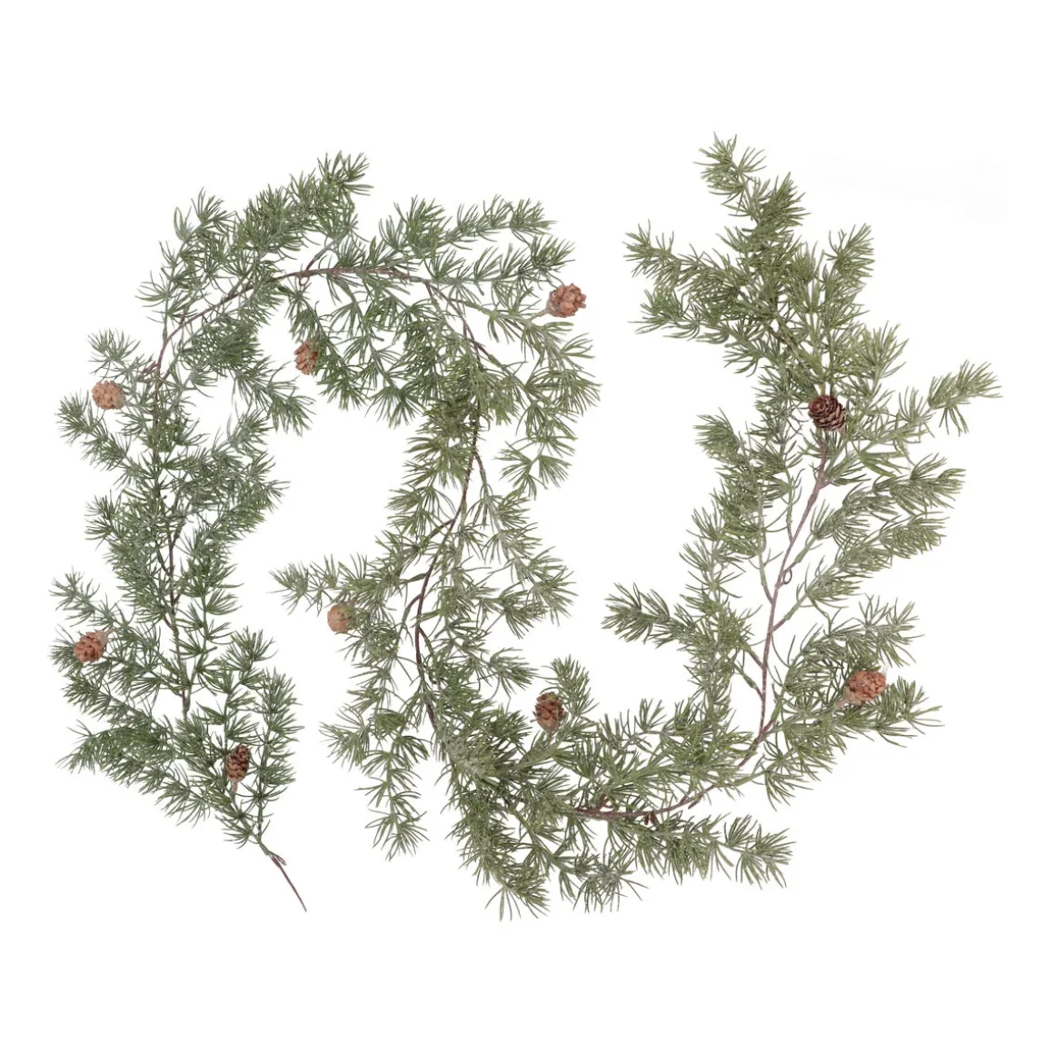 Door de winterse frost look lijkt deze groene kerstslinger zo uit het bos te komen. Met een lengte van 180 cm en 72 takjes, aangevuld met kleine dennenappeltjes, bevestig je deze guirlande eenvoudig om je trapleuning of schouw, in je vensterbank of op je tafel. Oftewel: daar waar jij wilt!